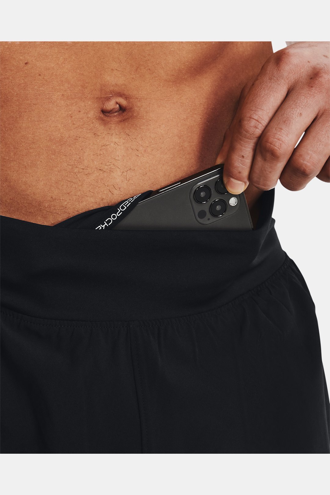 - Expandable center-front waistband pocket is water-resistant & keeps your phone secure, with no bouncing