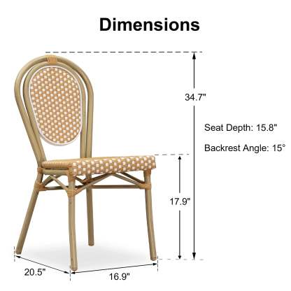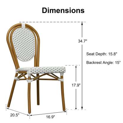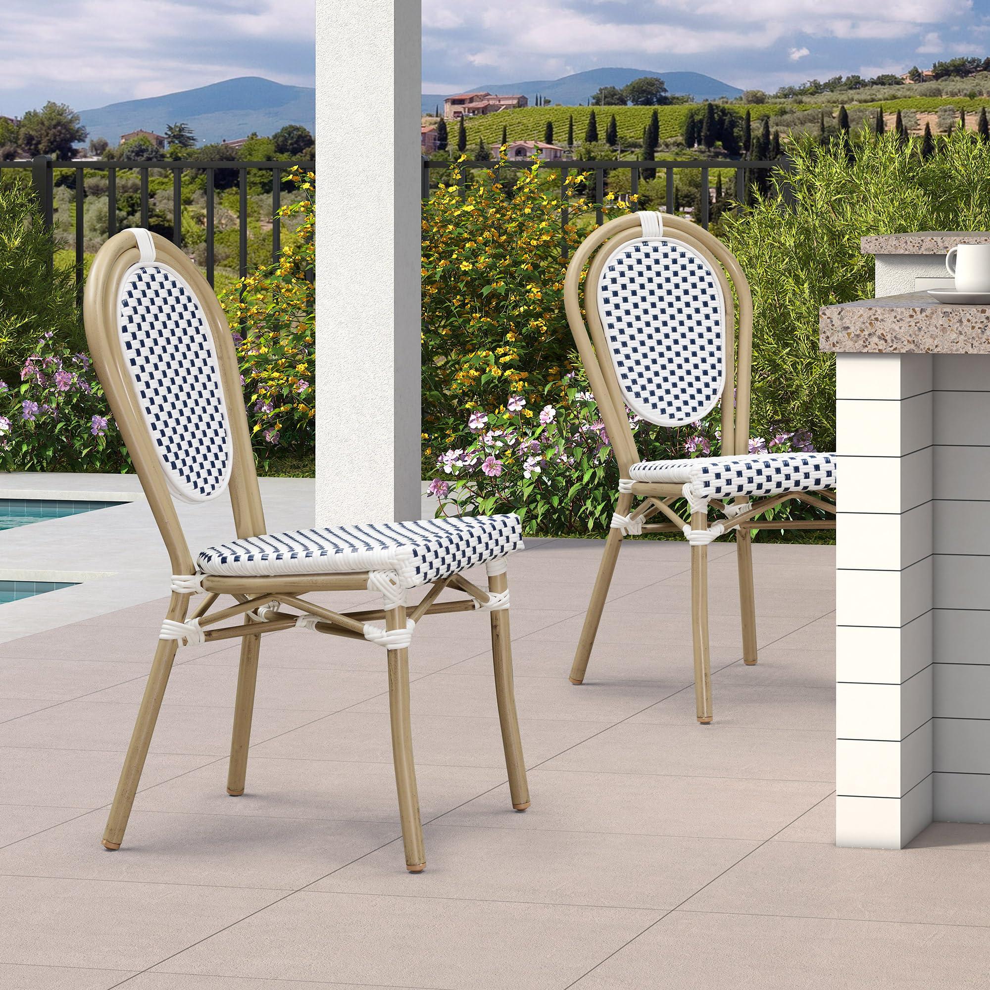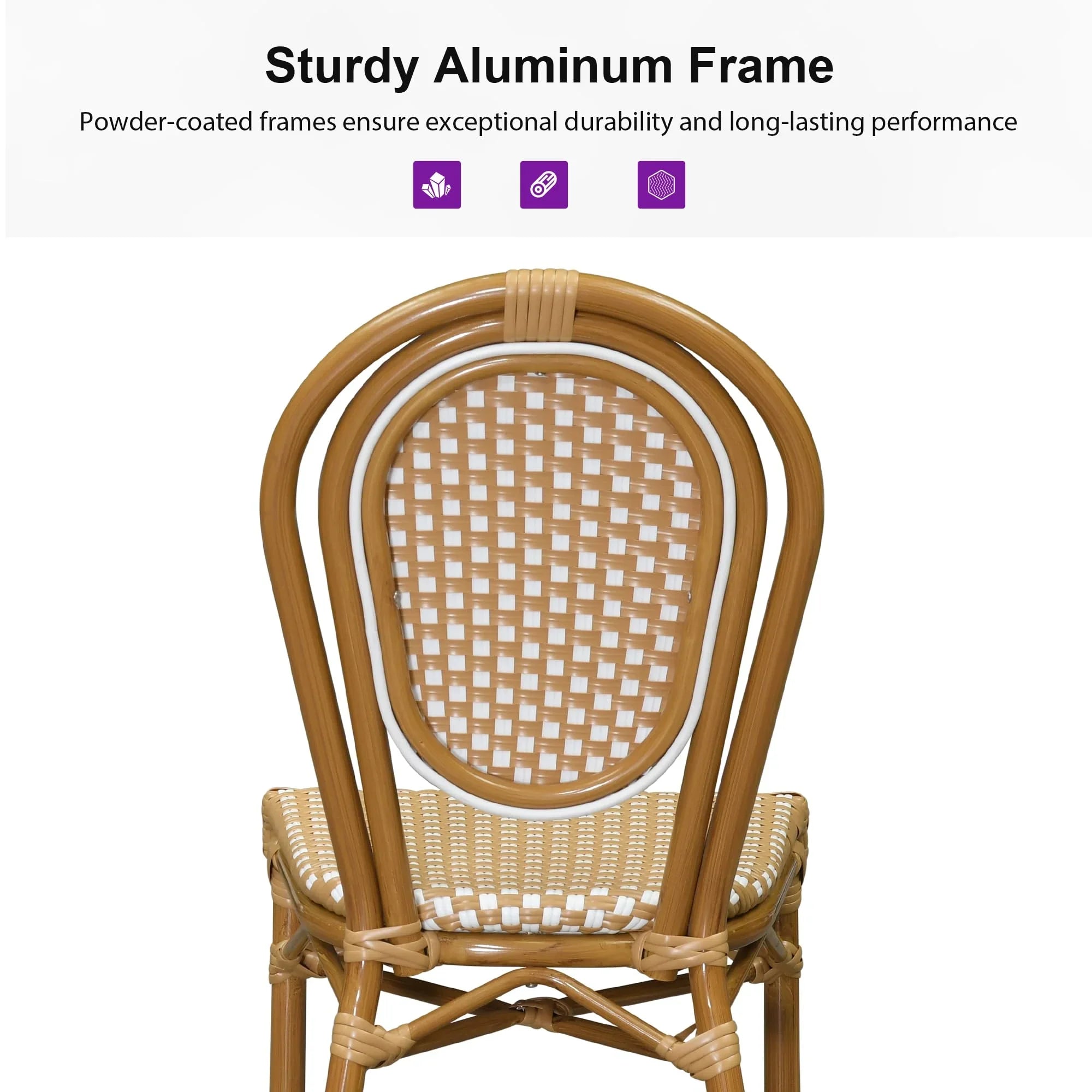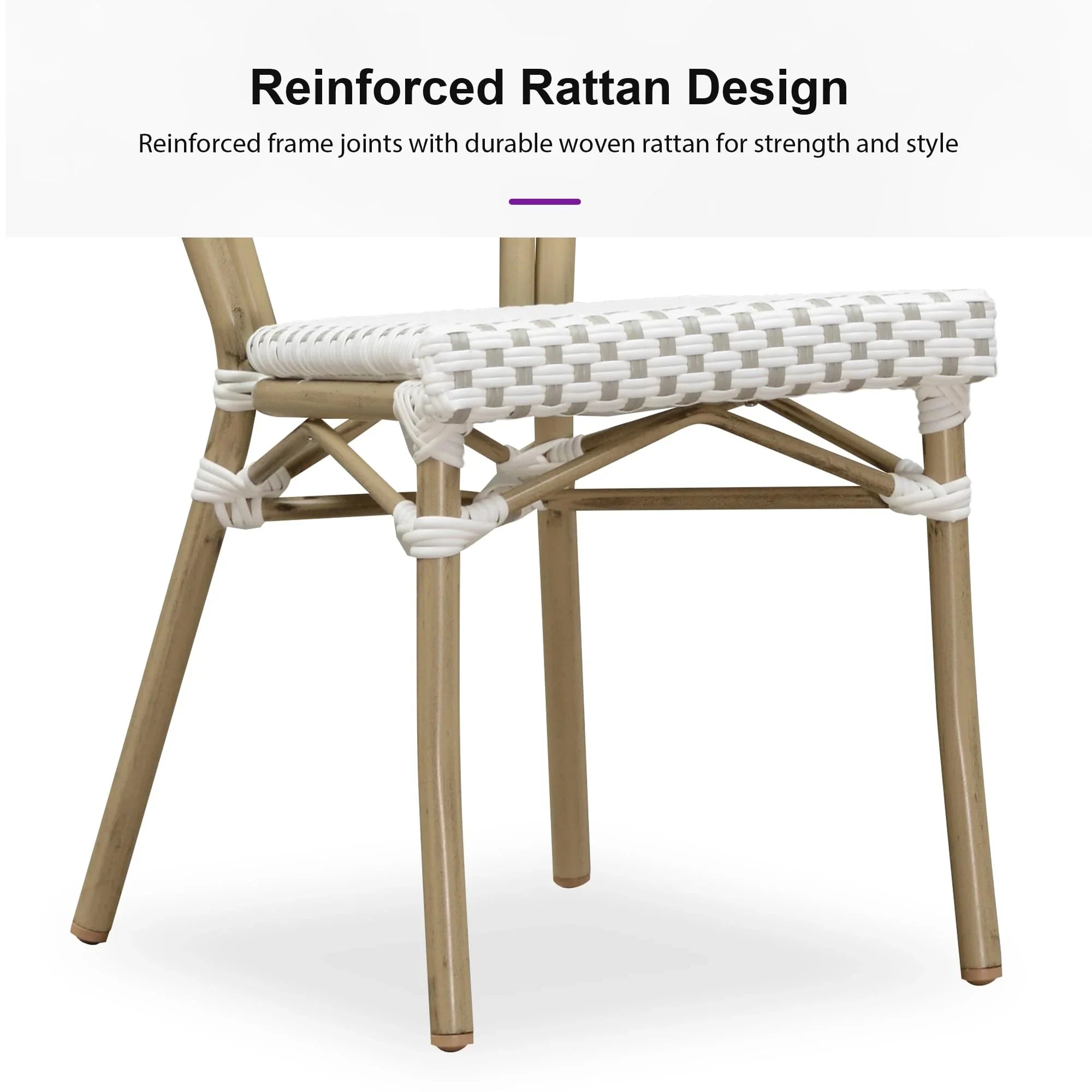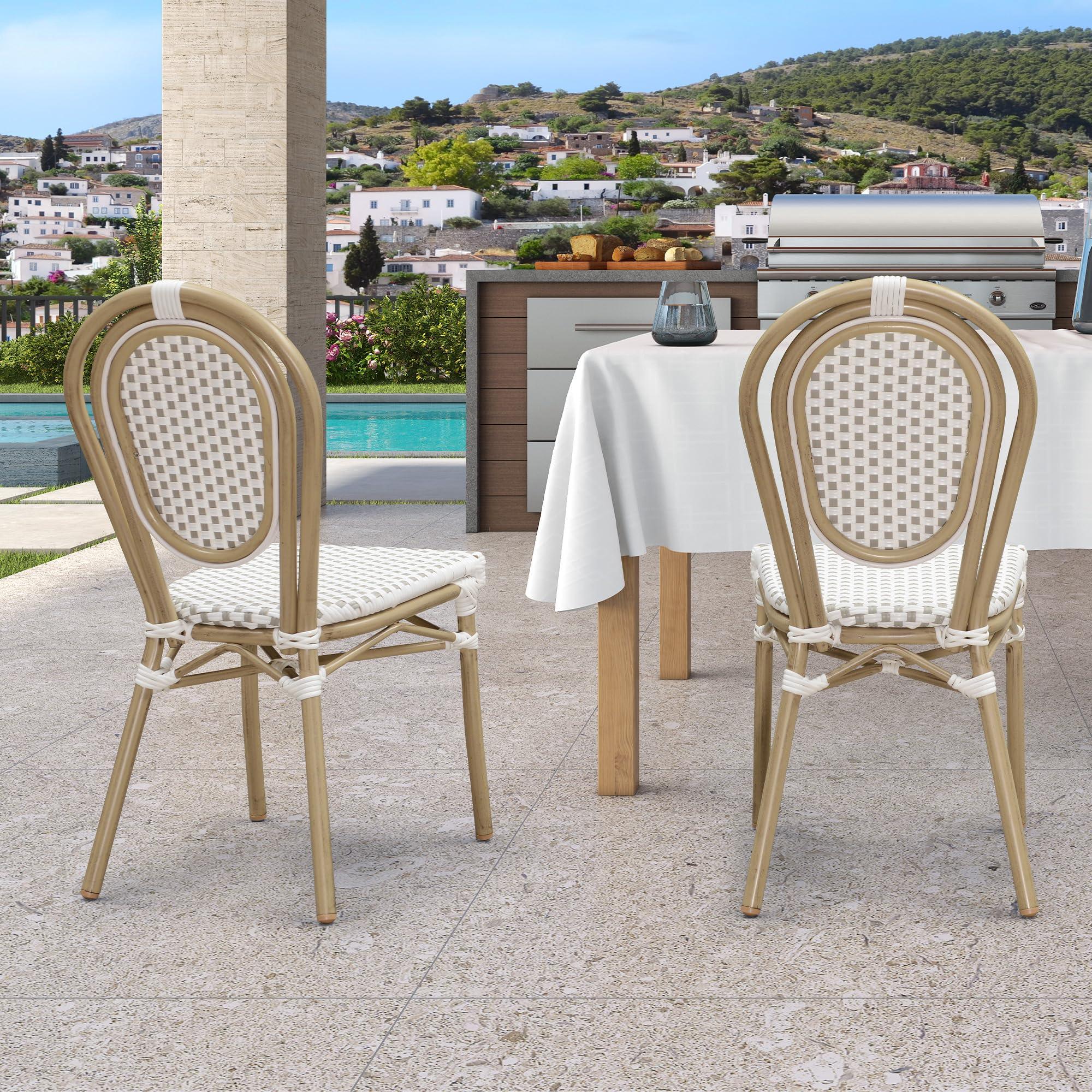 PURPLE LEAF Patio Dining Chair Set of 2 French Aluminium Frame Chairs with Rattan for Indoor Kitchen Deck Bistros Cafe Restaurant