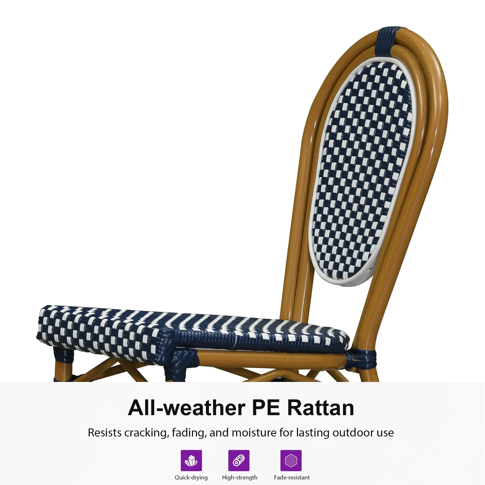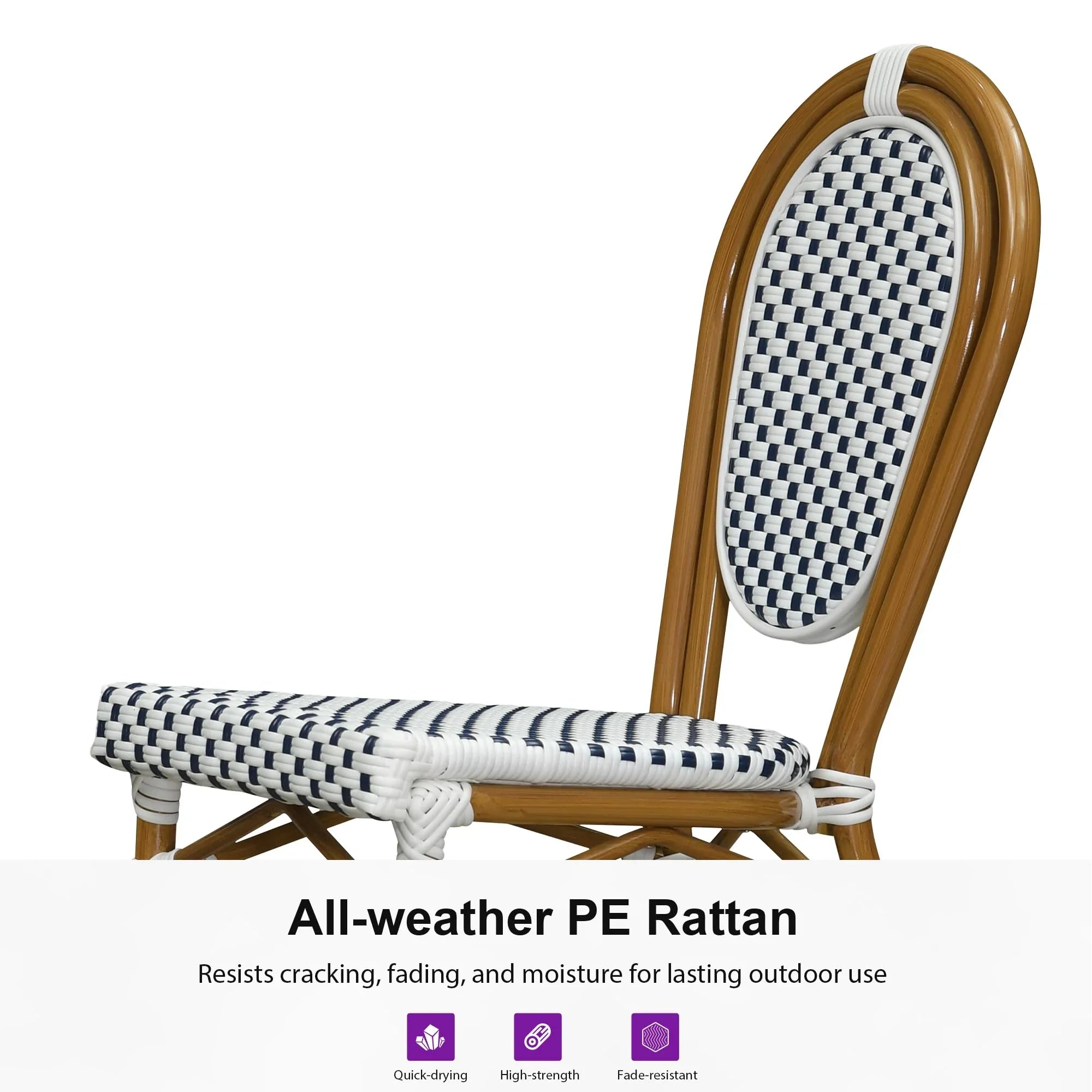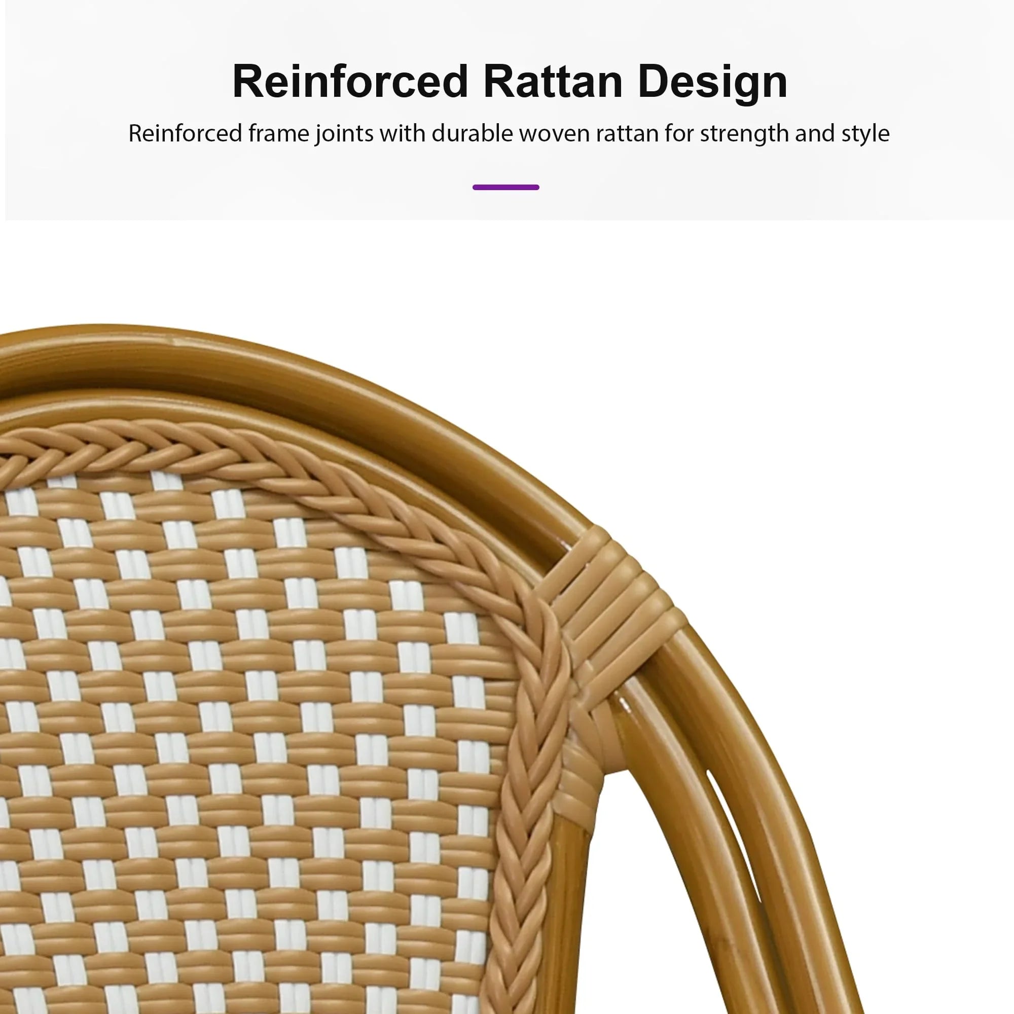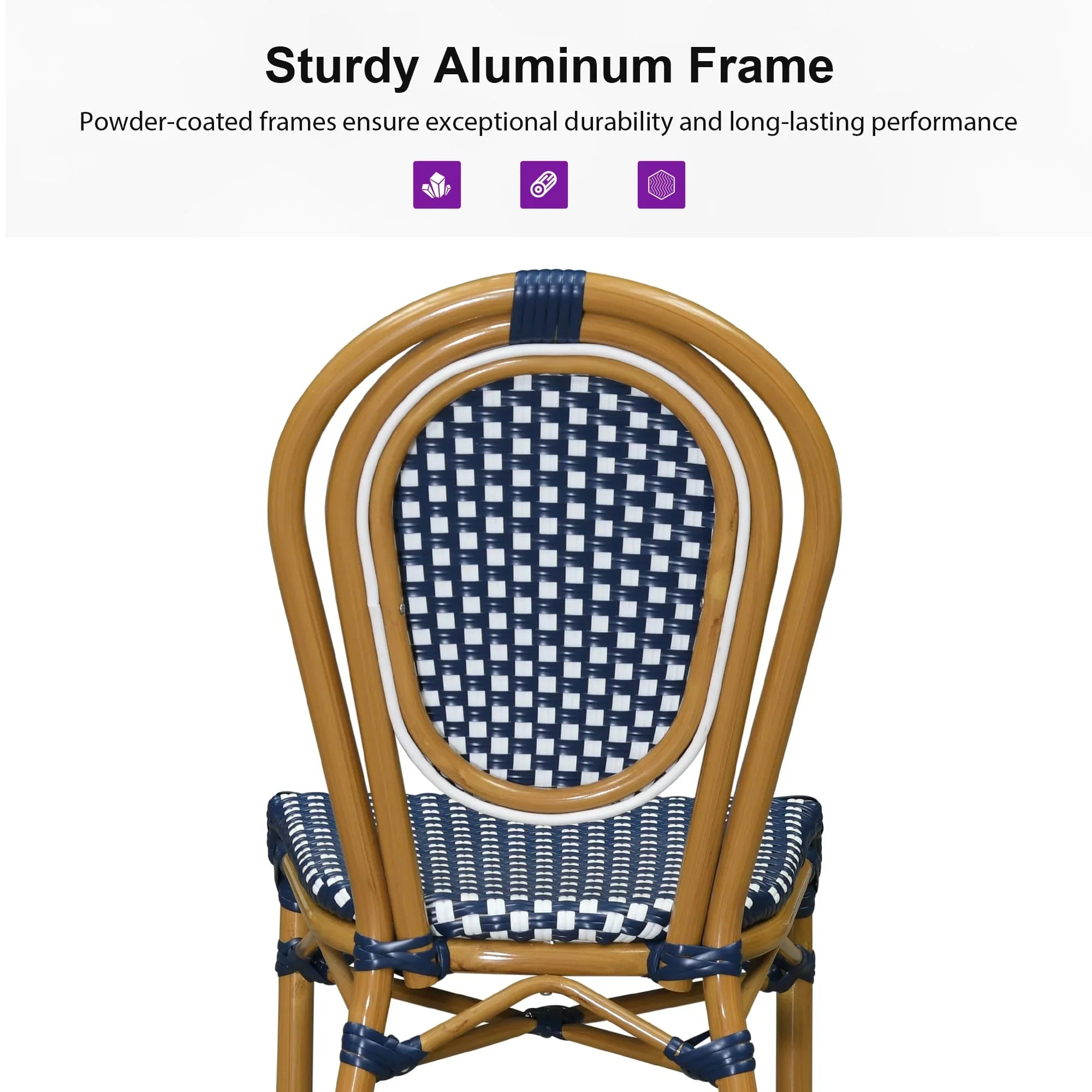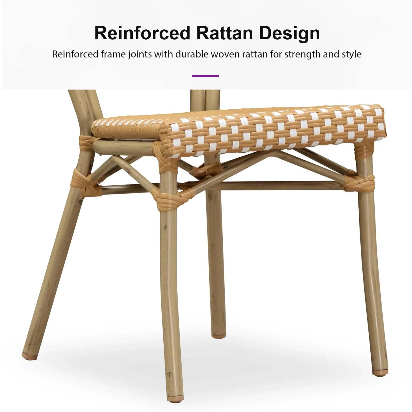 PURPLE LEAF Patio Dining Chair Set of 2 French Aluminium Frame Chairs with Rattan for Indoor Kitchen Deck Bistros Cafe Restaurant