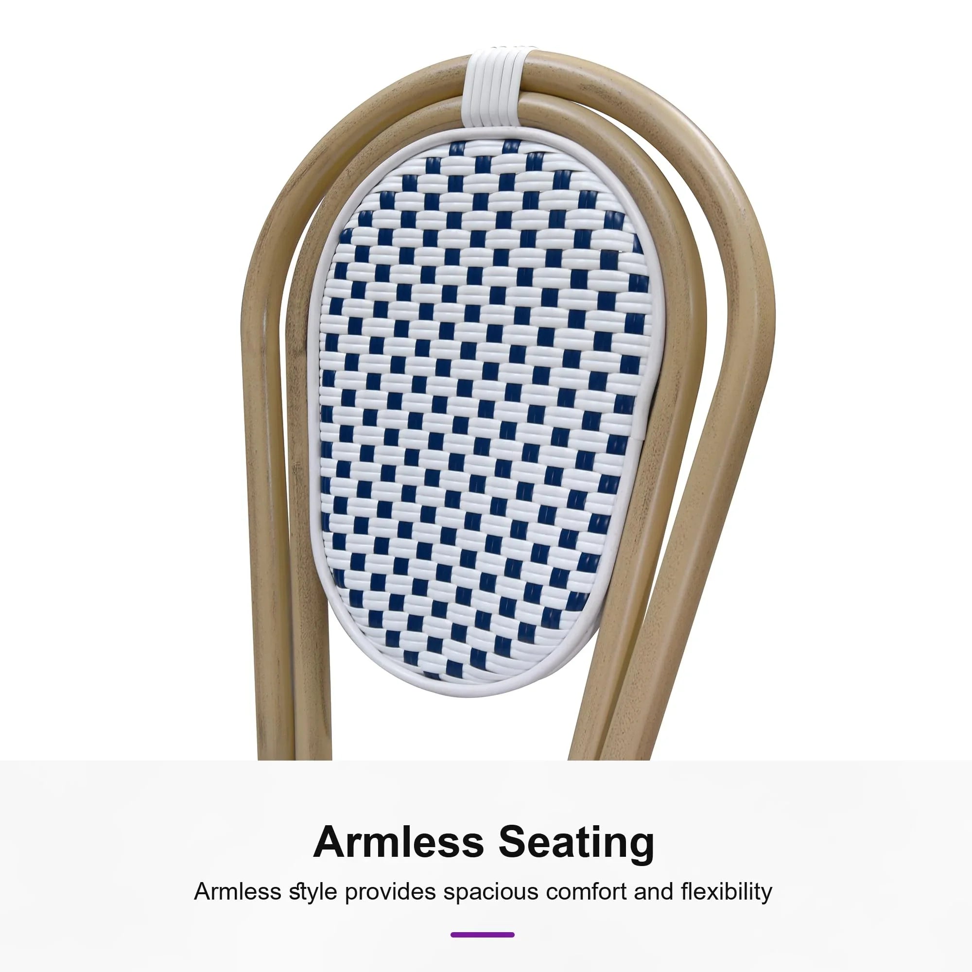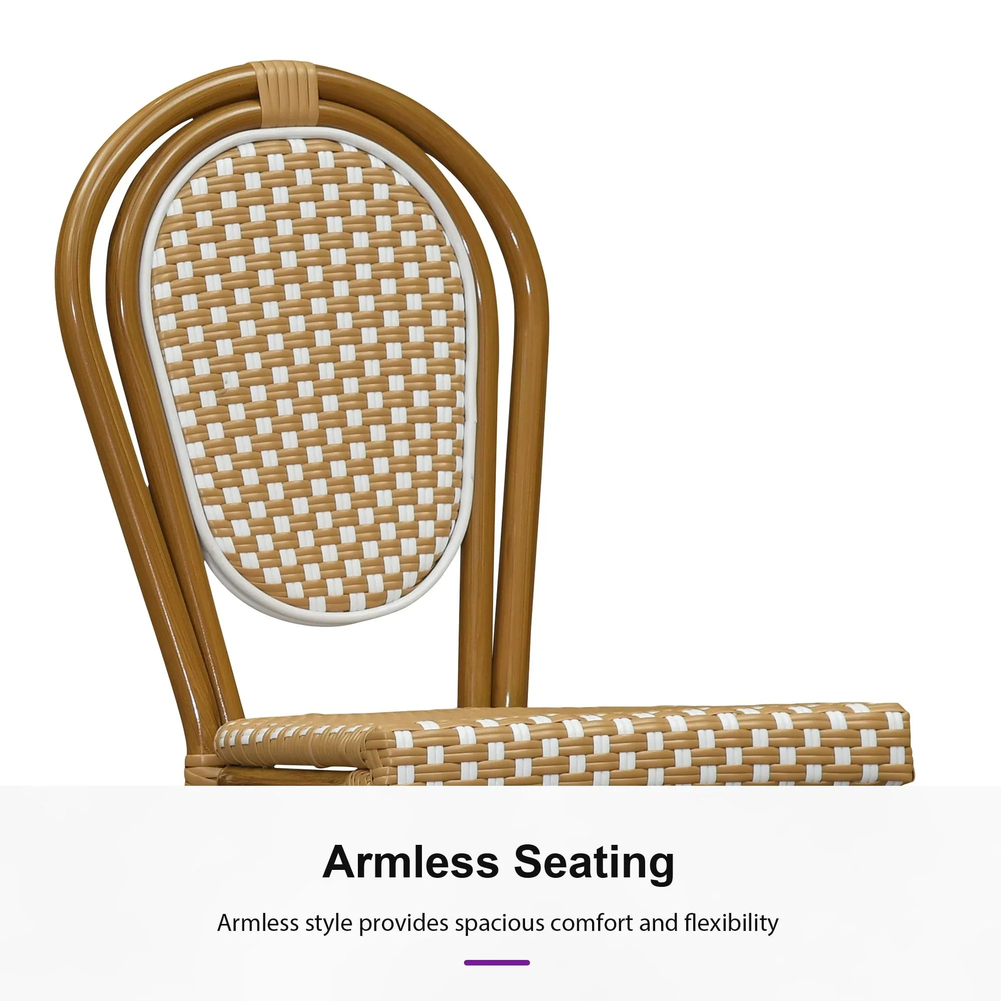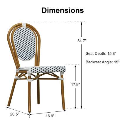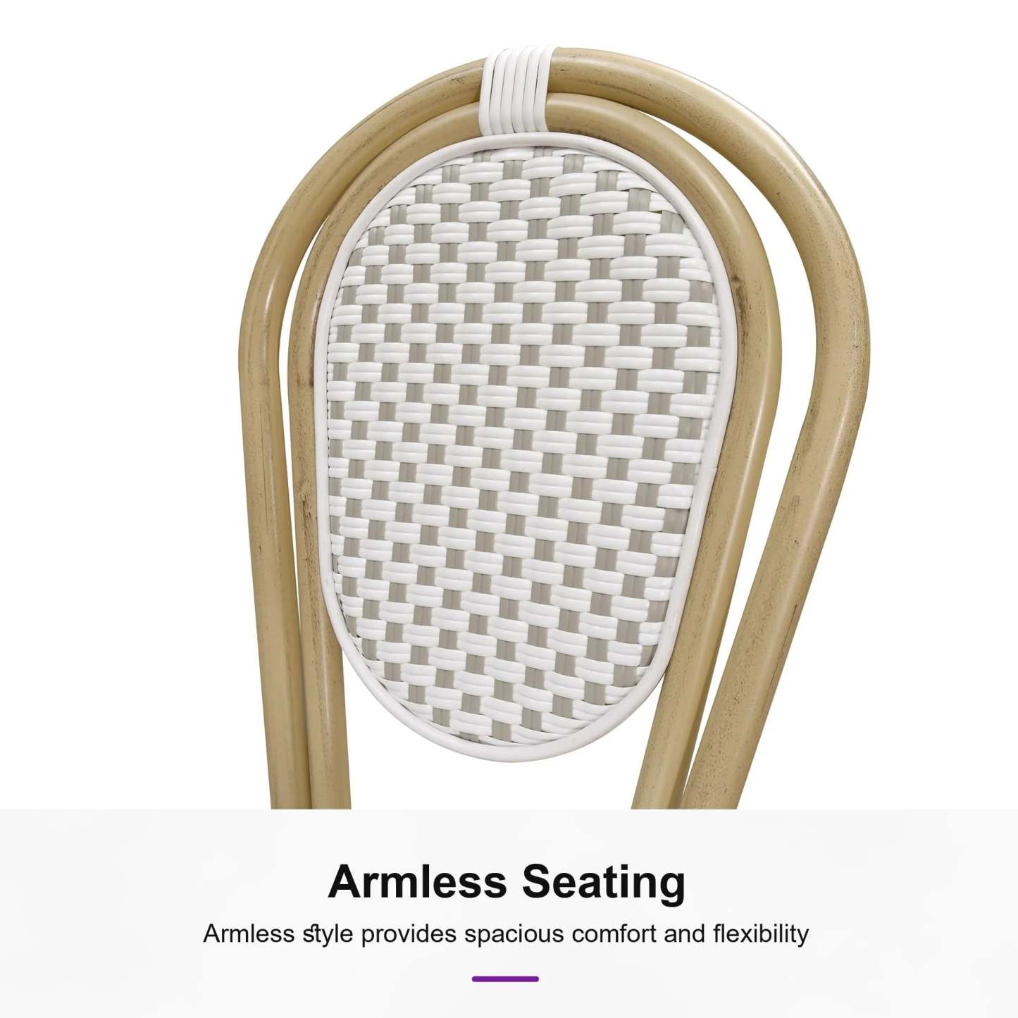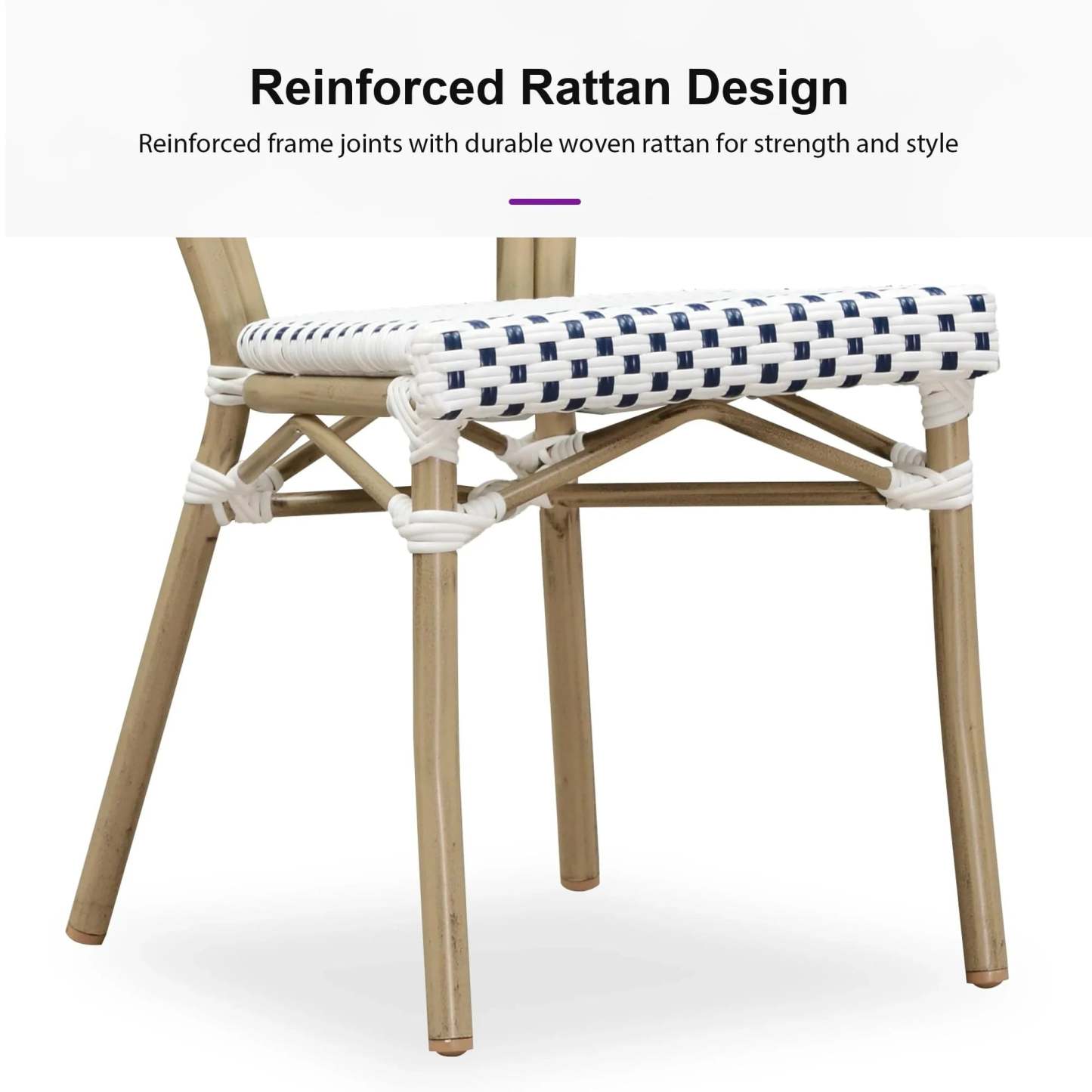 PURPLE LEAF Patio Dining Chair Set of 2 French Aluminium Frame Chairs with Rattan for Indoor Kitchen Deck Bistros Cafe Restaurant