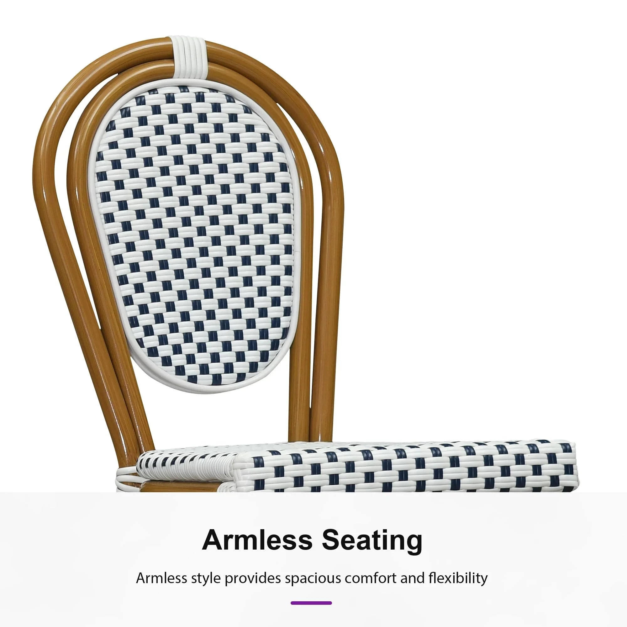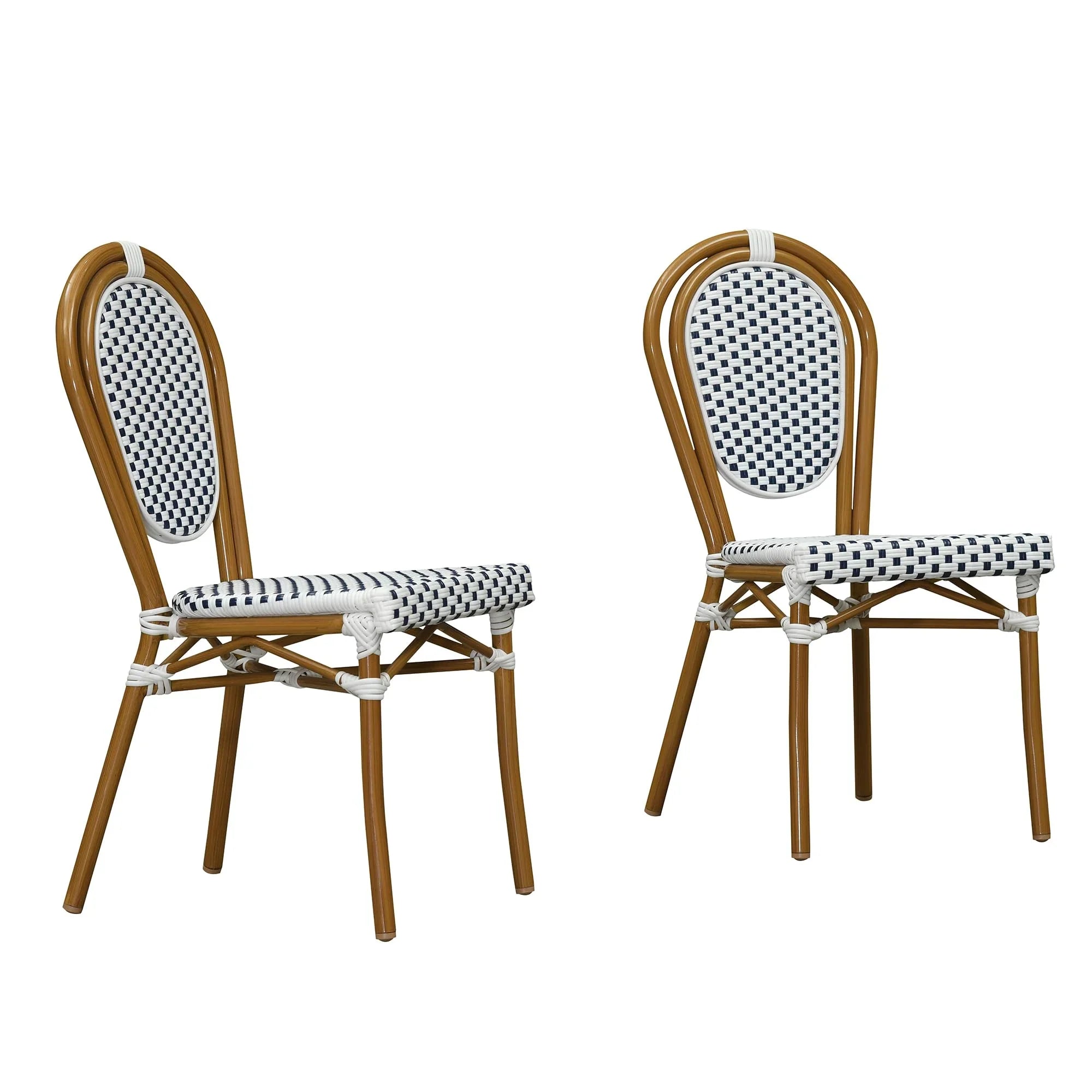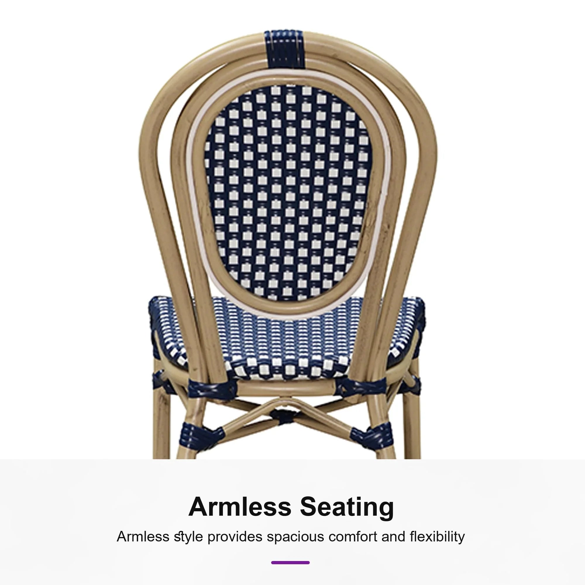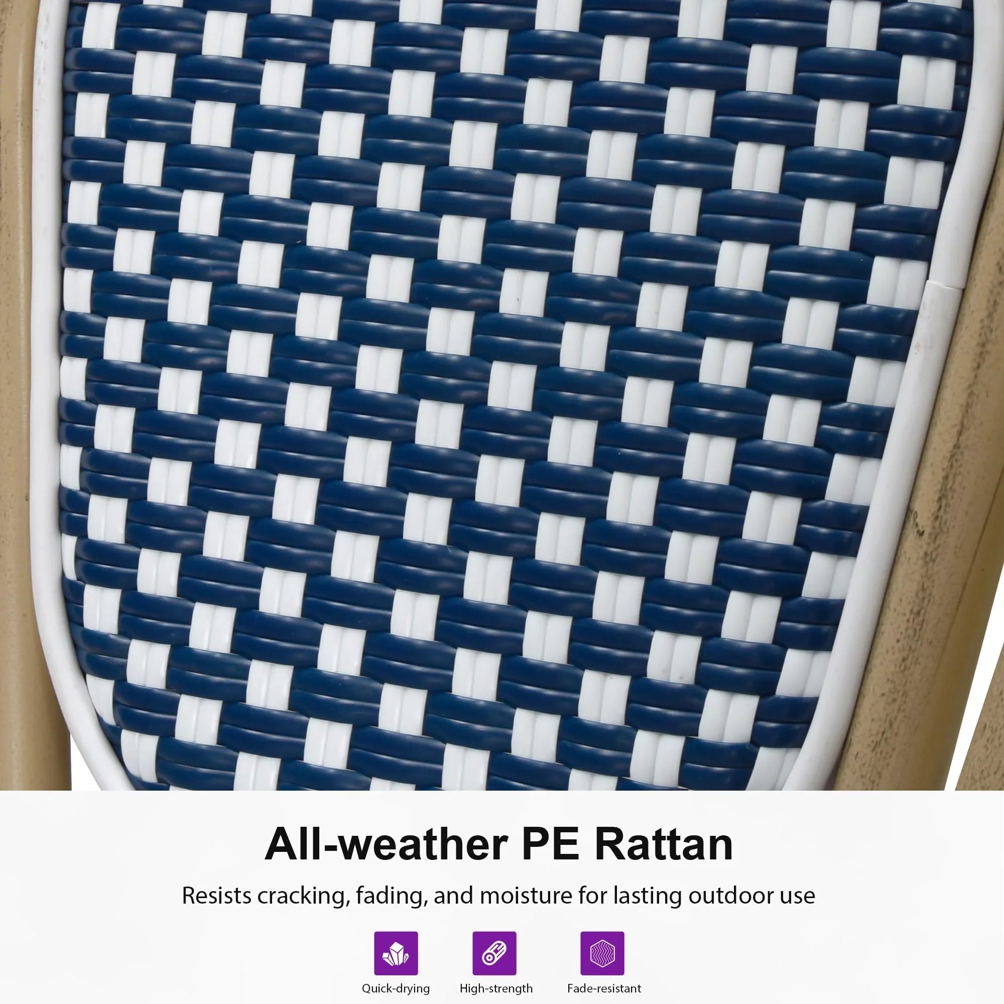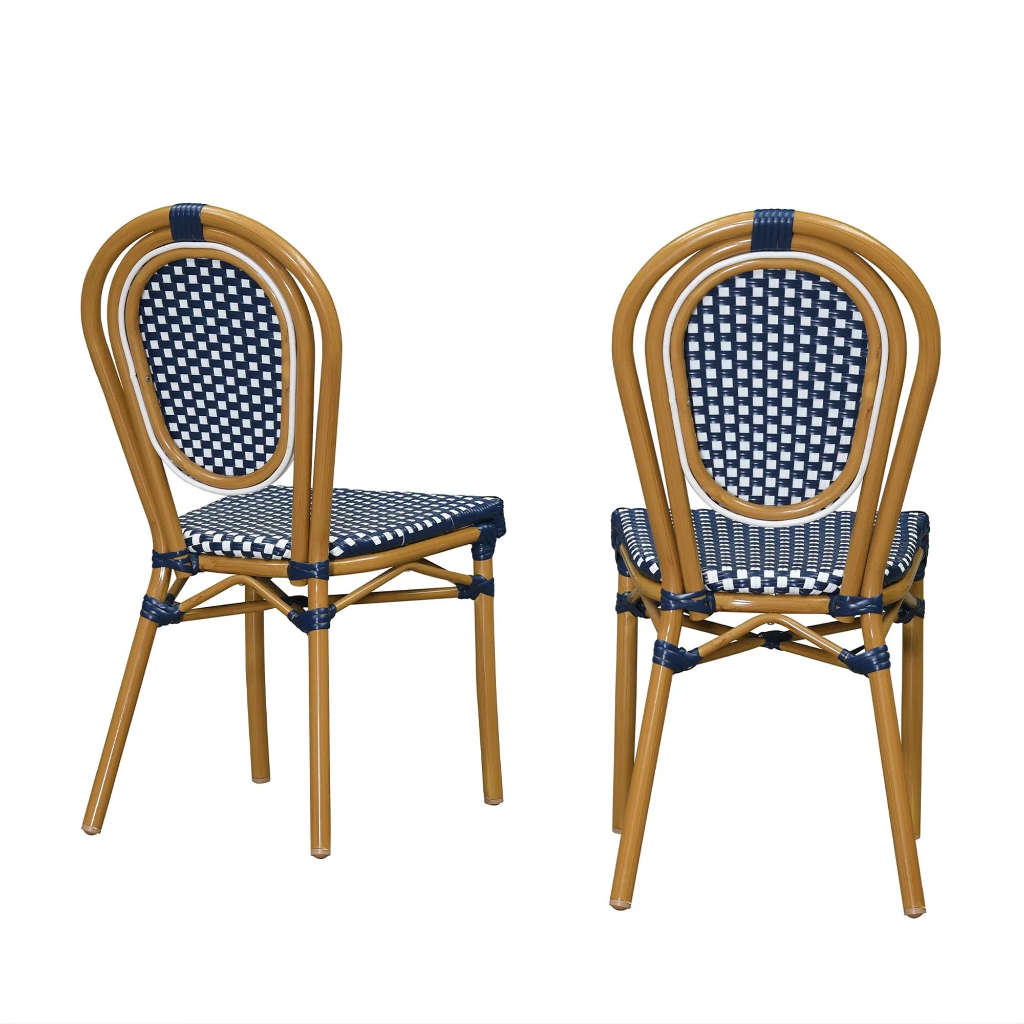 PURPLE LEAF Patio Dining Chair Set of 2 French Aluminium Frame Chairs with Rattan for Indoor Kitchen Deck Bistros Cafe Restaurant