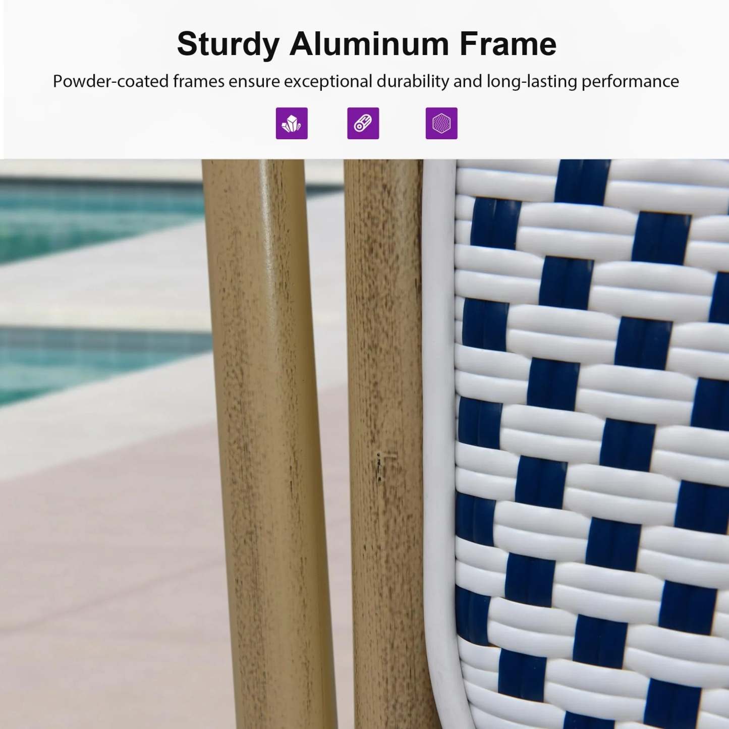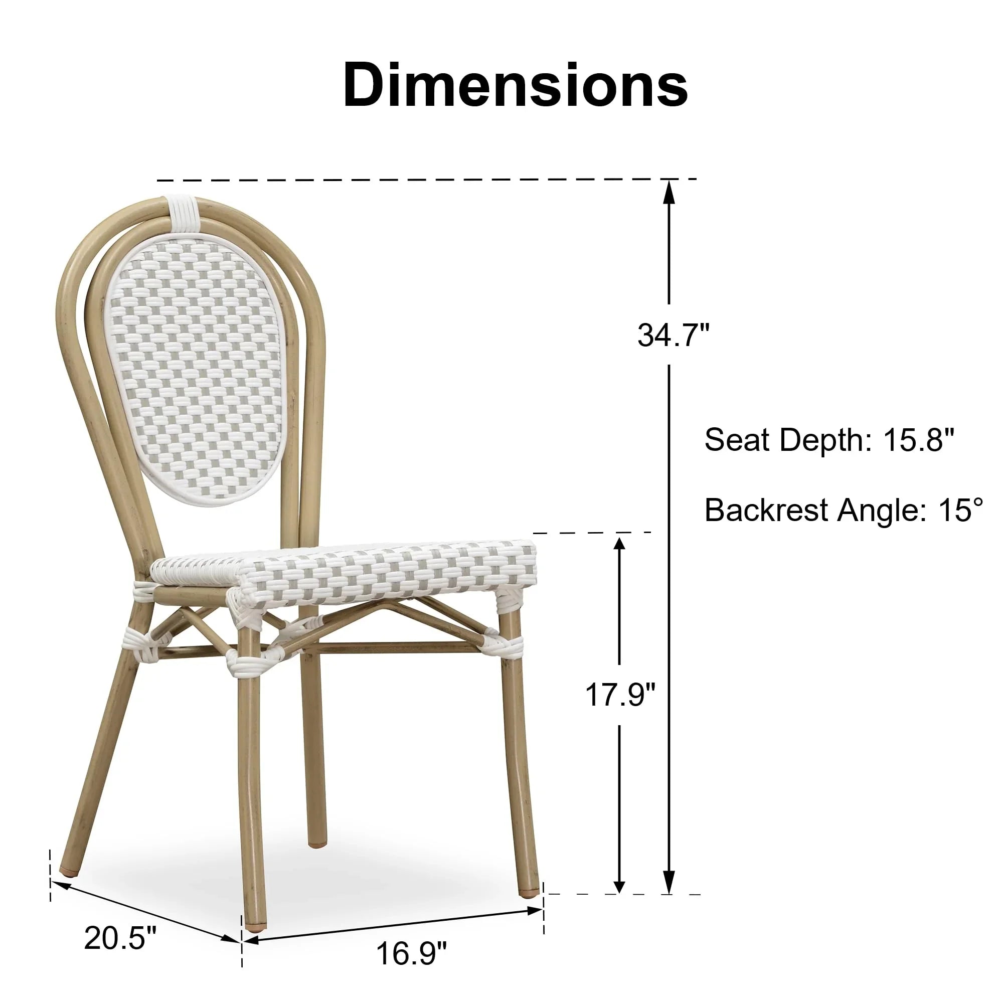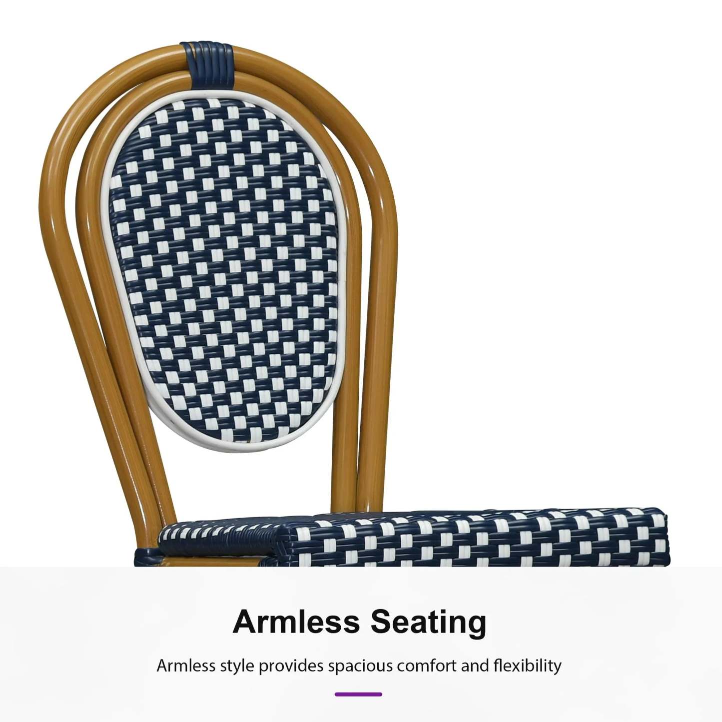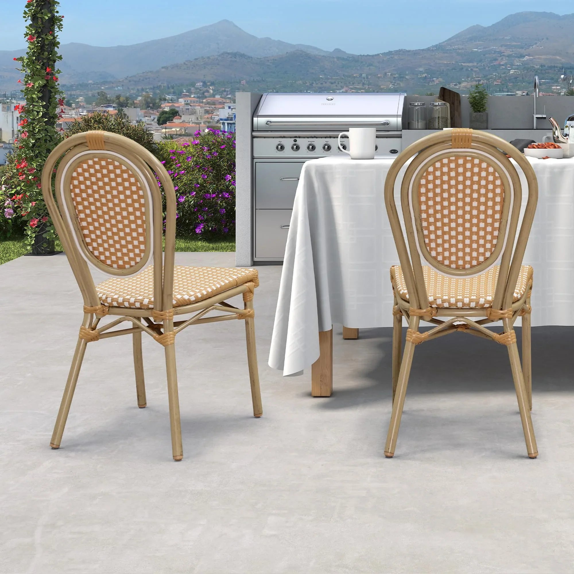 PURPLE LEAF Patio Dining Chair Set of 2 French Aluminium Frame Chairs with Rattan for Indoor Kitchen Deck Bistros Cafe Restaurant