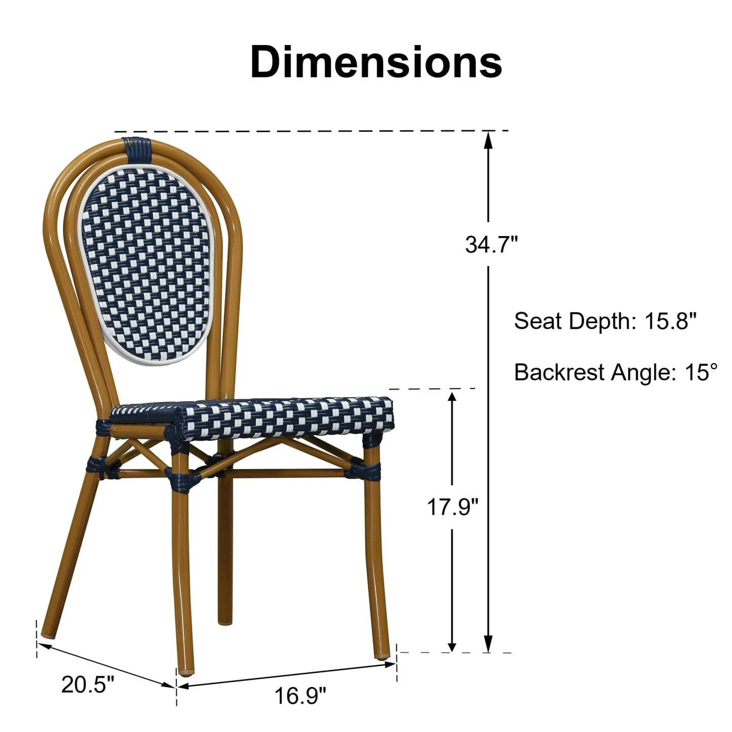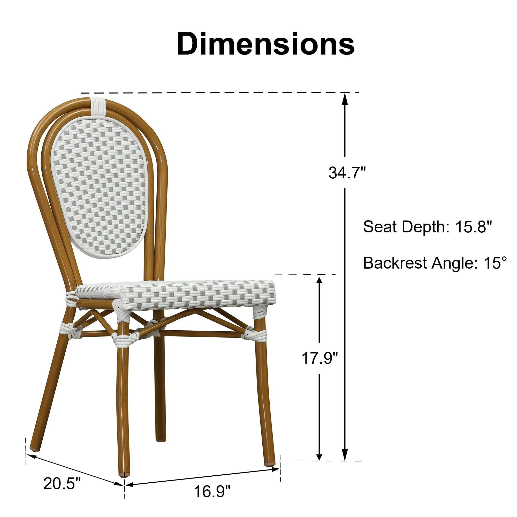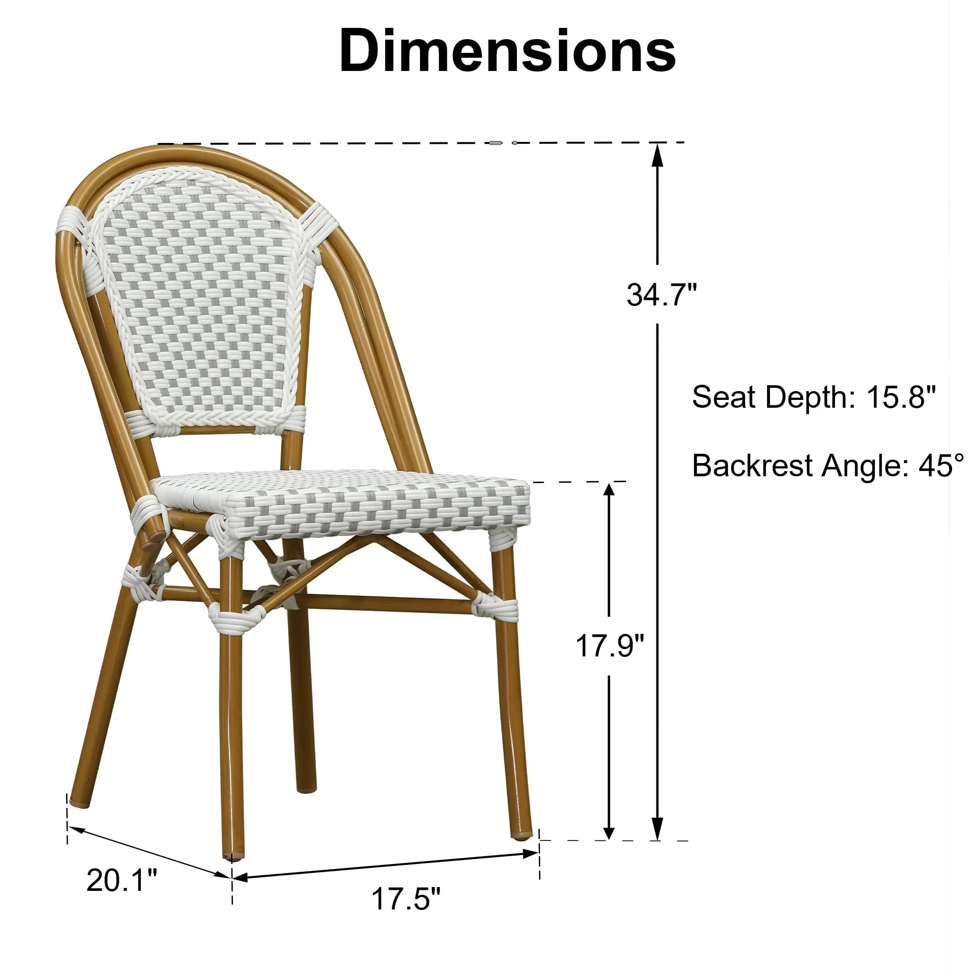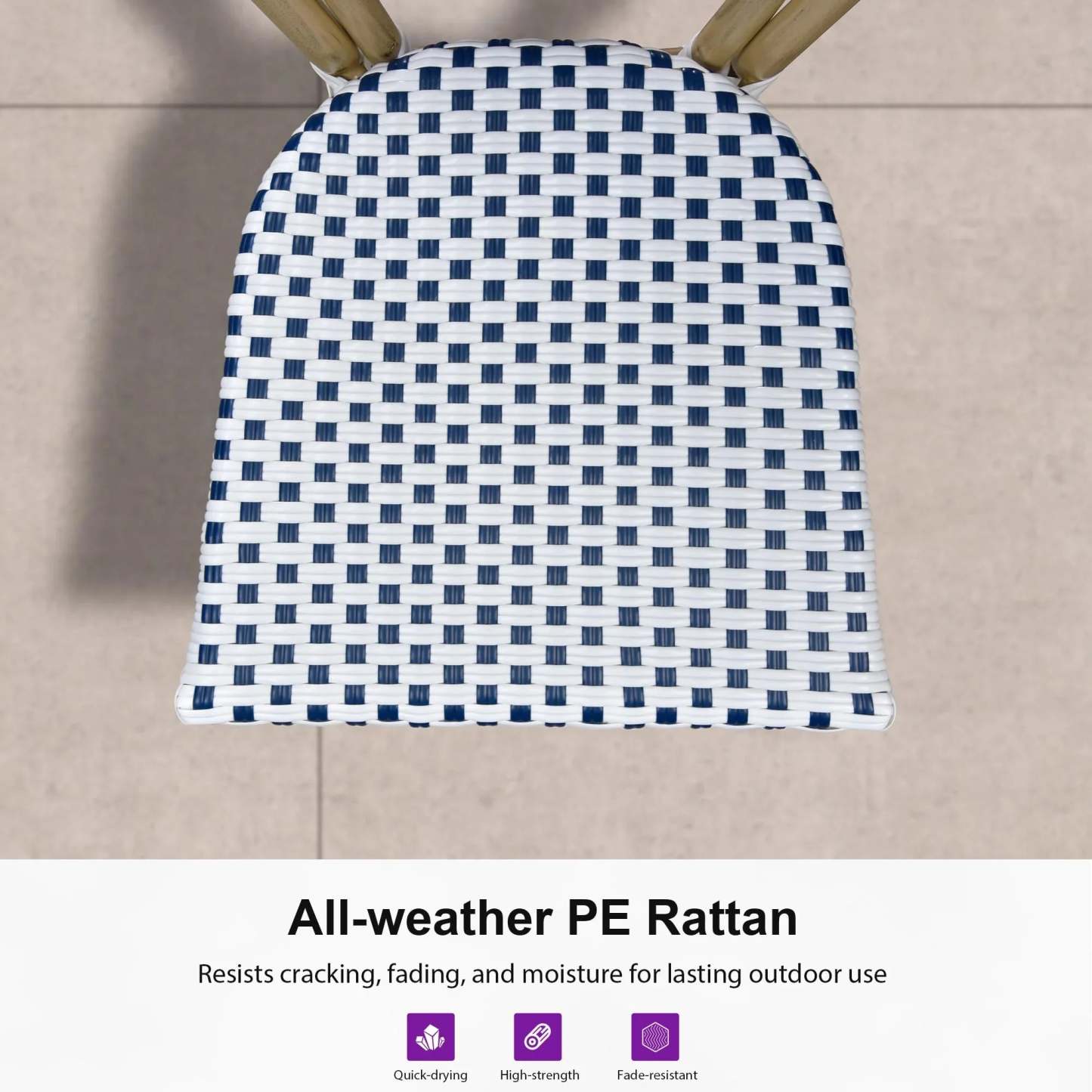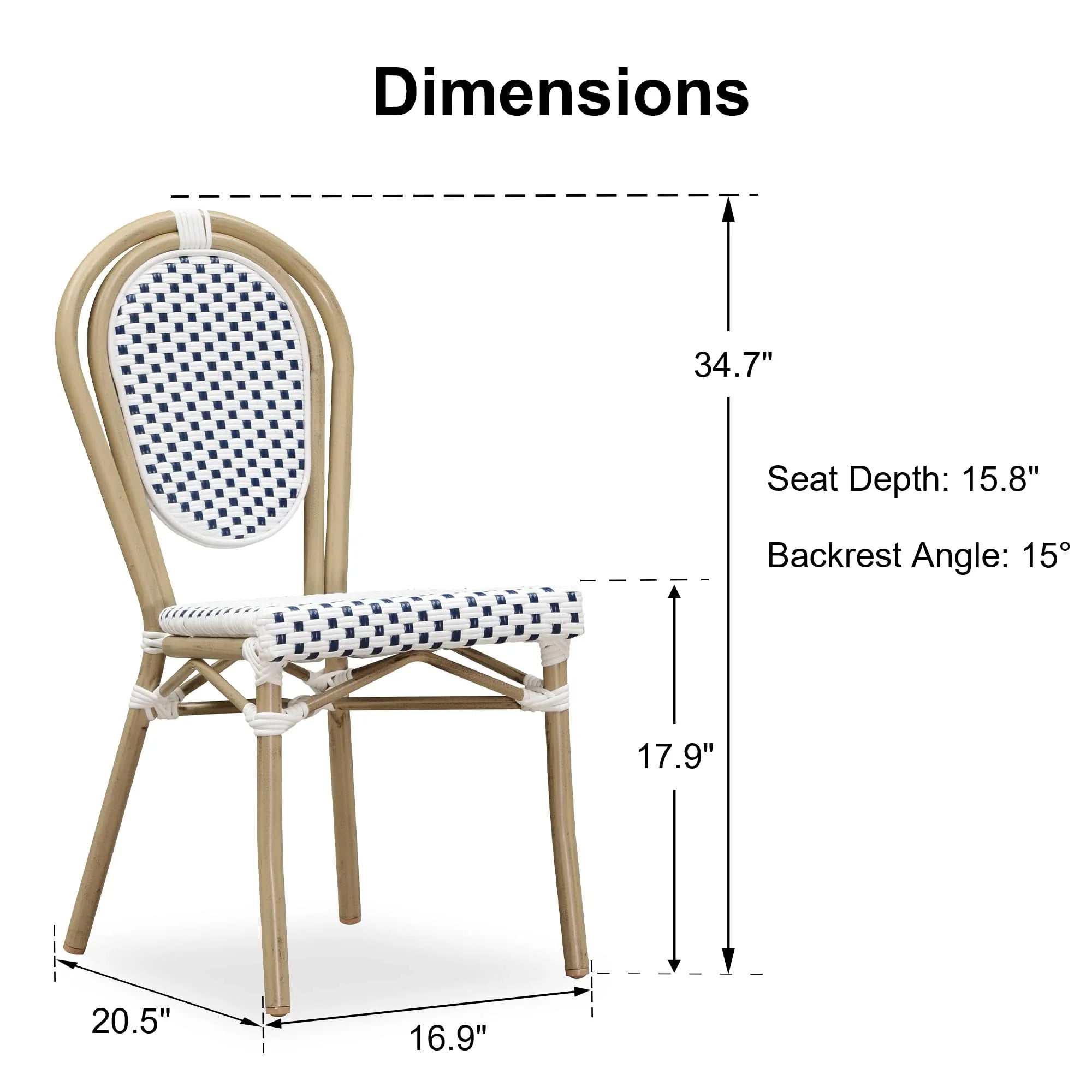 PURPLE LEAF Patio Dining Chair Set of 2 French Aluminium Frame Chairs with Rattan for Indoor Kitchen Deck Bistros Cafe Restaurant