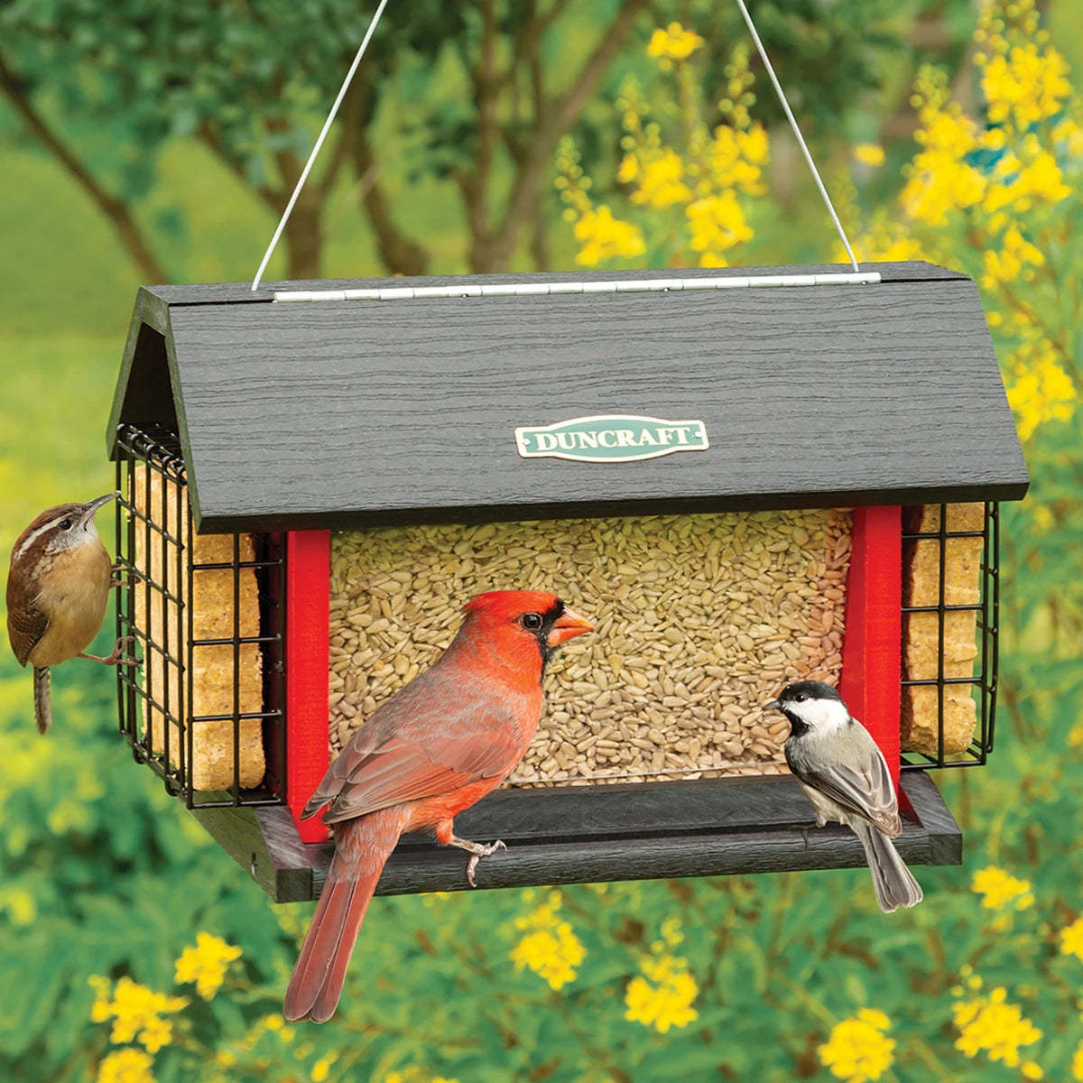 - Attract perching & clinging birds with feeding from all four sides