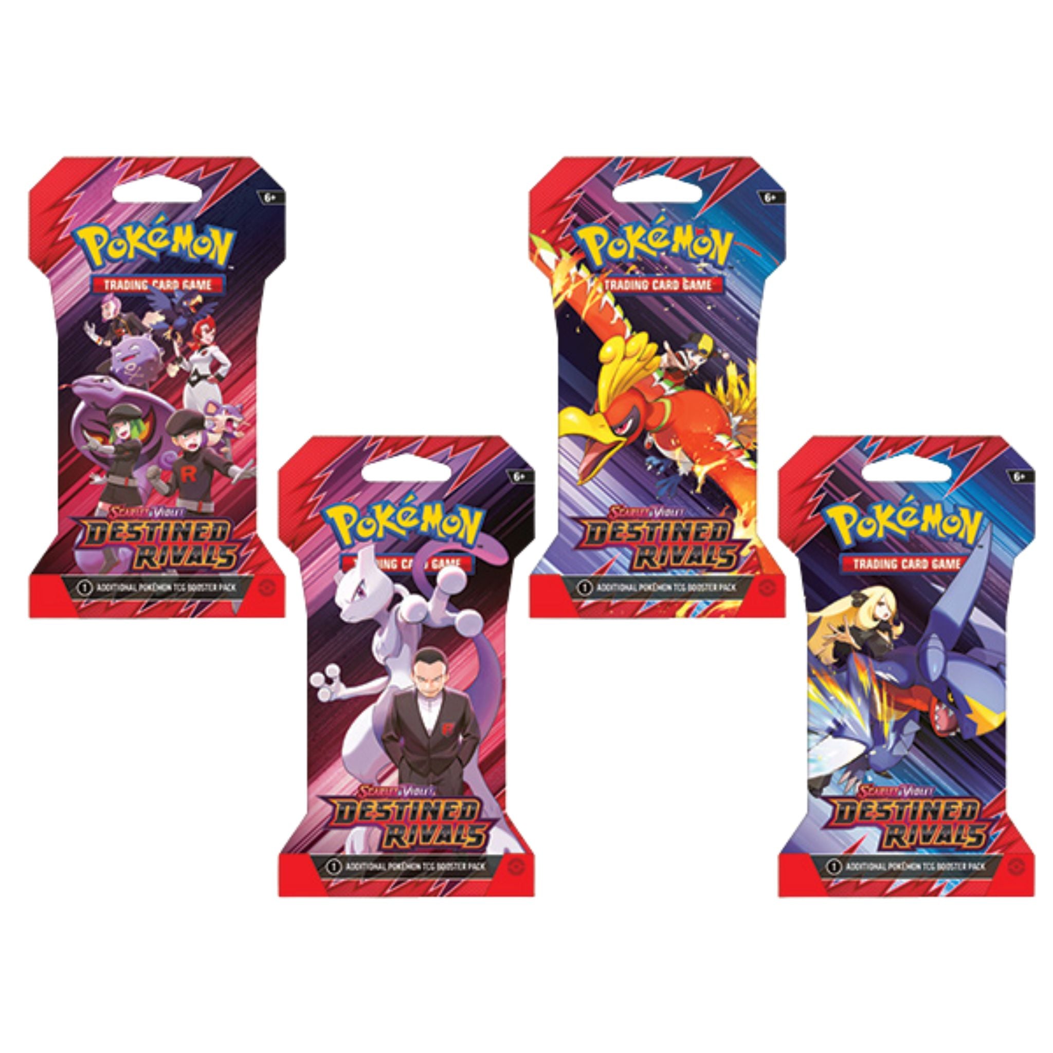 Pokémon Trainers, be on high alert! The nefarious Team Rocket is setting its latest plan into motion, and heroic Trainers are racing to stop it. Join forces with the likes of Cynthia and Garchomp ex, Ethan and Ho-Oh ex, or Arven and Mabosstiff ex… Or reconsider your loyalties and fight alongside Team Rocket’s Pokémon like Mewtwo ex—under the command of Giovanni! Choose a side, assemble your allies, and battle boldly in the Pokémon TCG: Scarlet & Violet—Destined Rivals expansion!