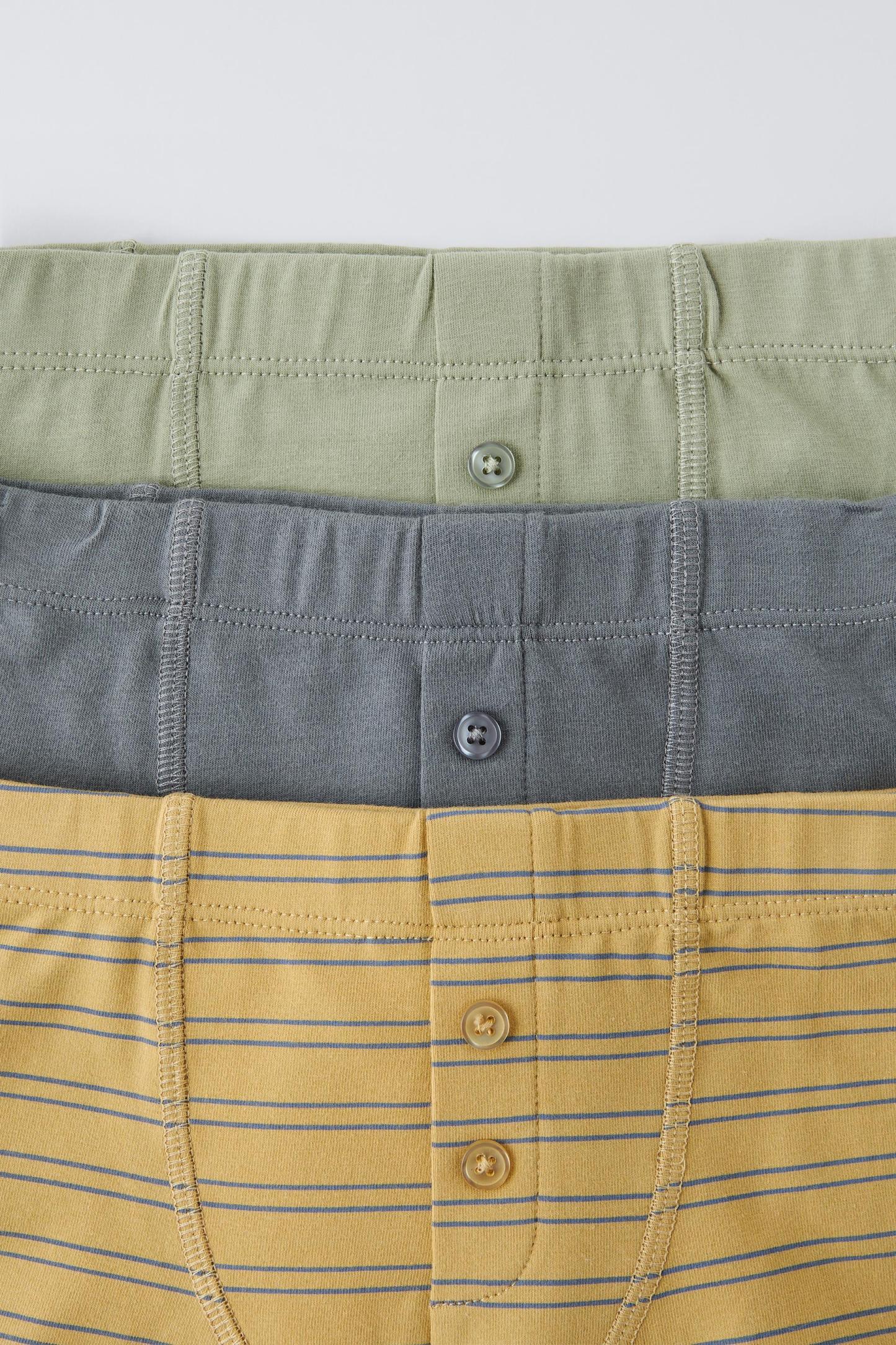 2-6 YEARS/ THREE-PACK OF STRIPED BUTTONED BOXERS