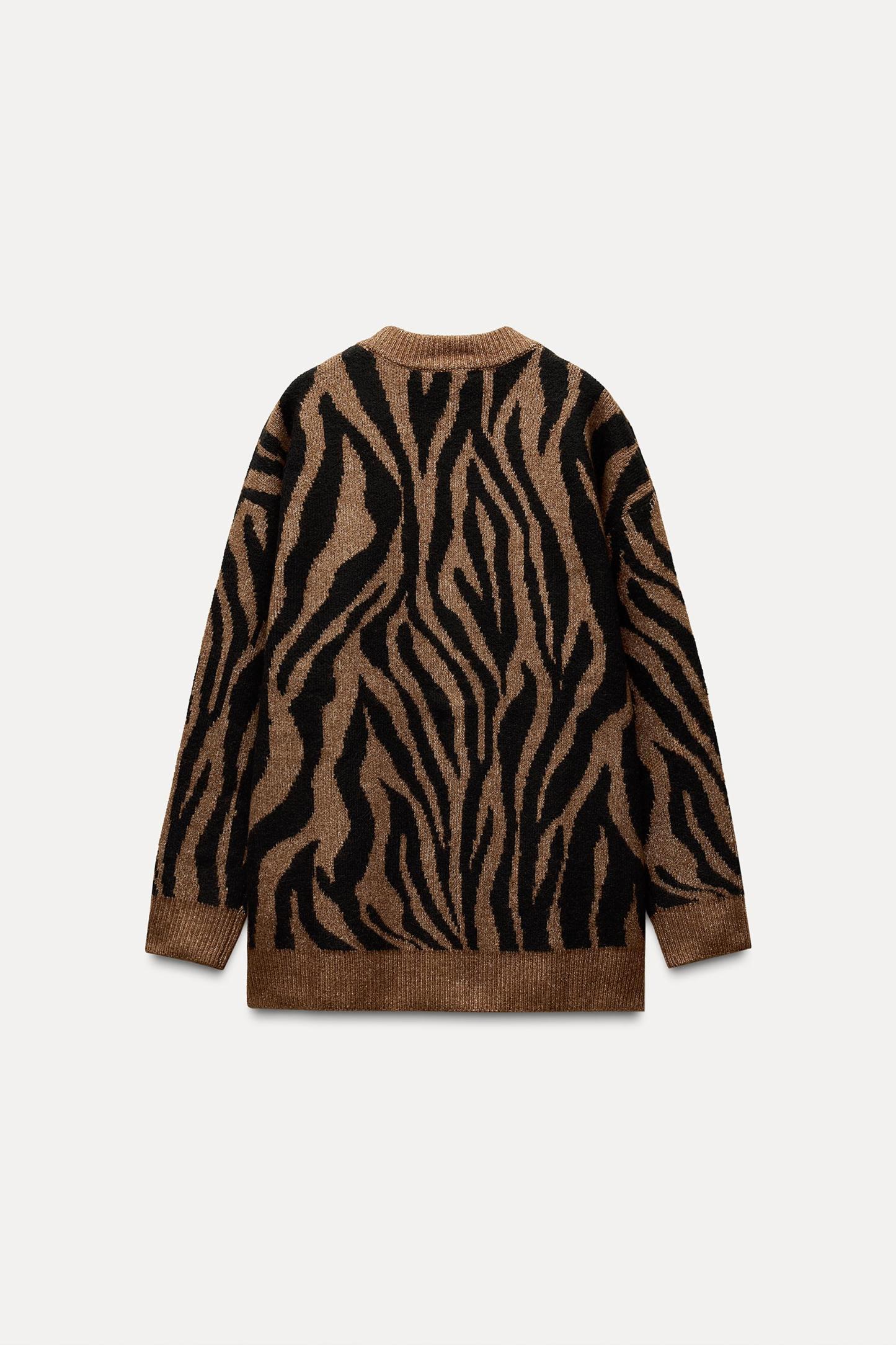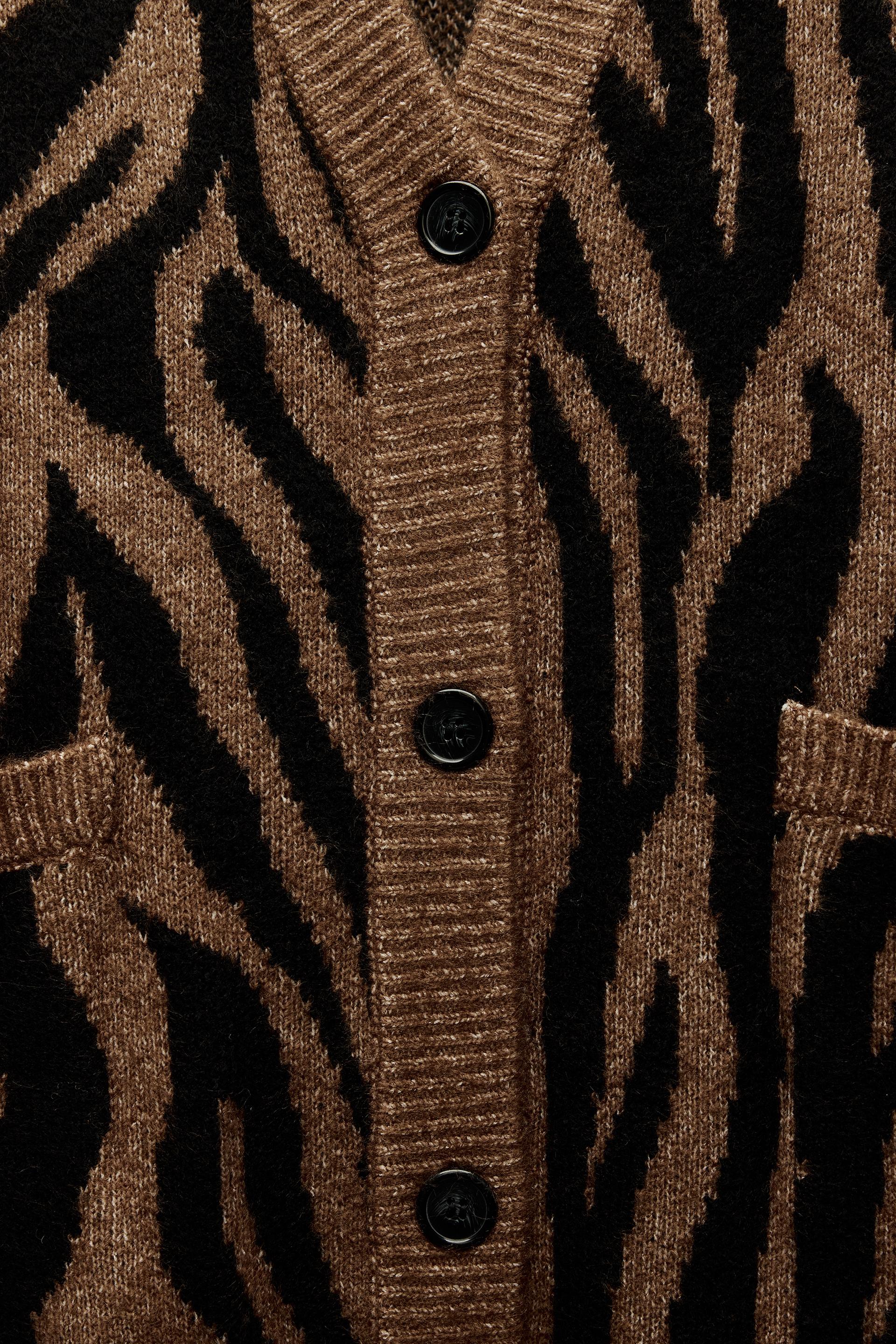 ANIMAL PRINT JACQUARD KNIT CARDIGAN