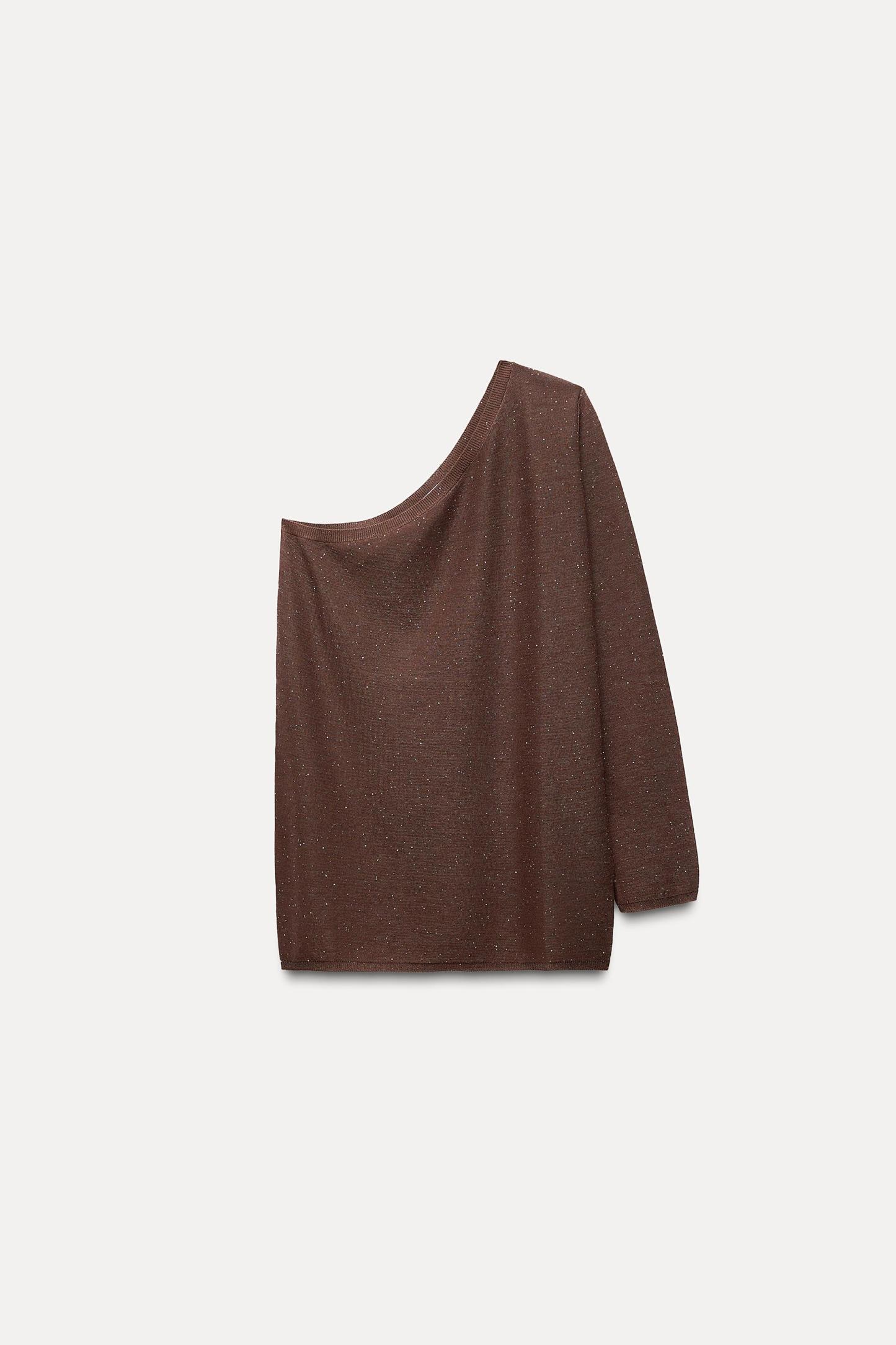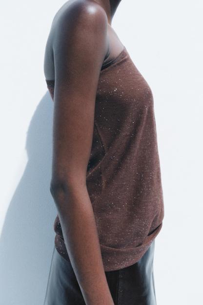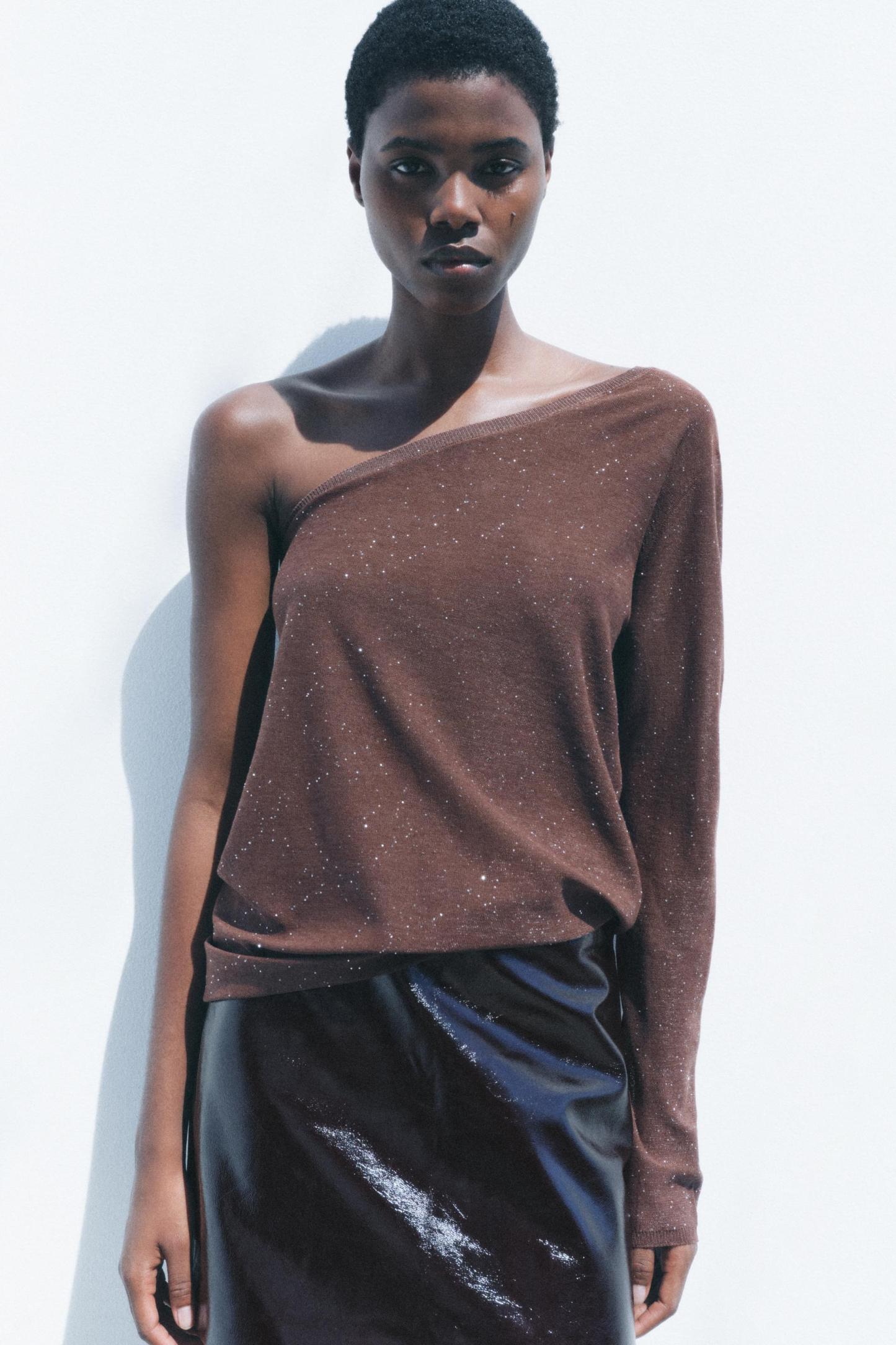 ASYMMETRIC SHIMMER KNIT TOP