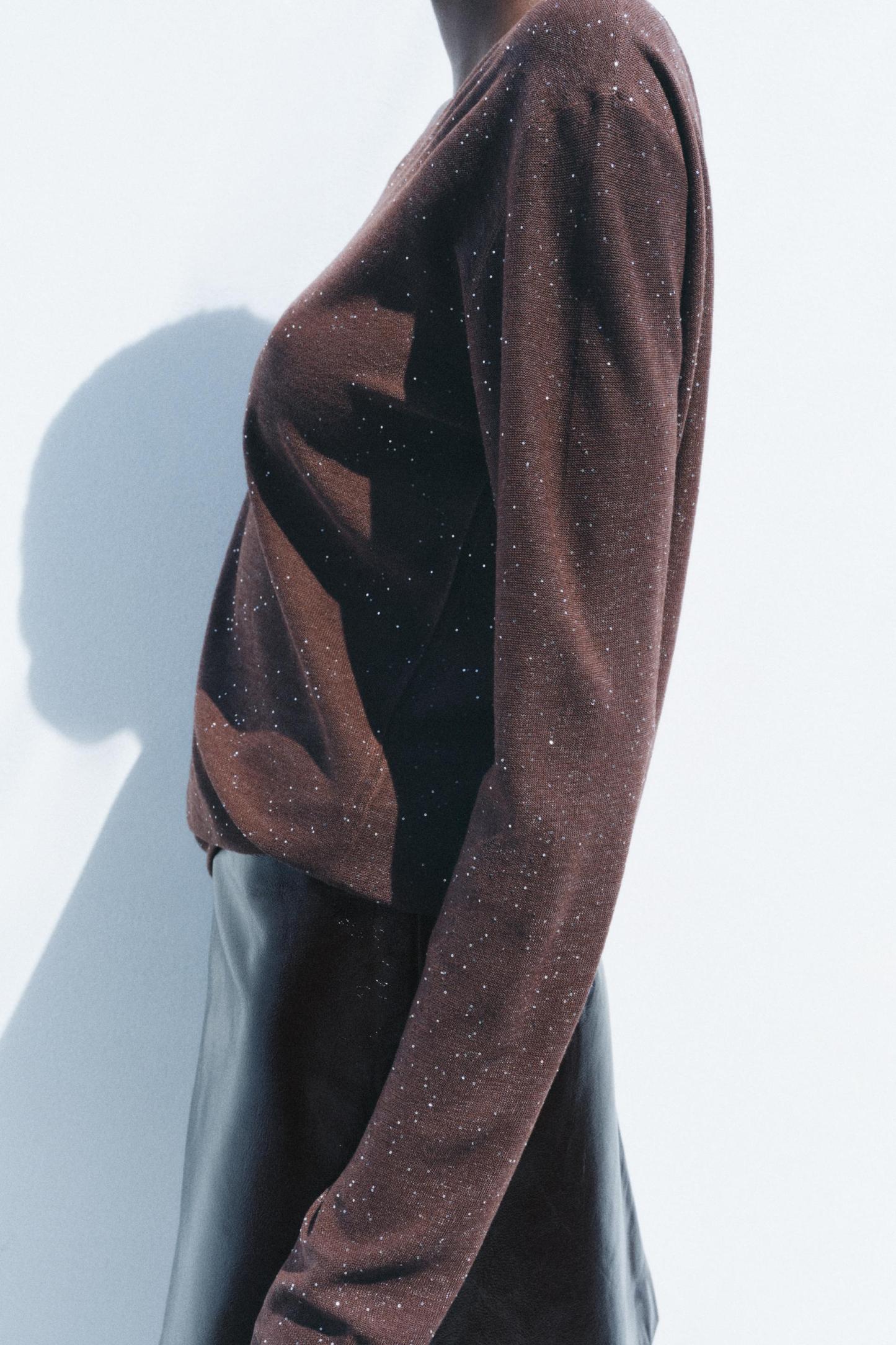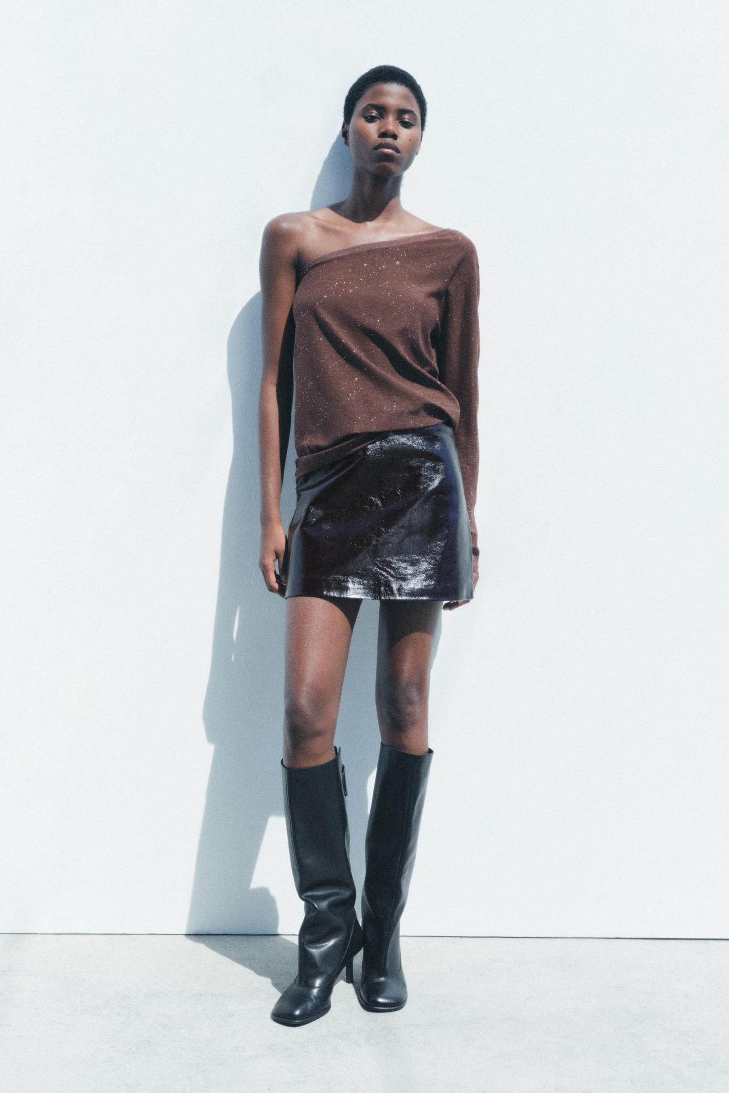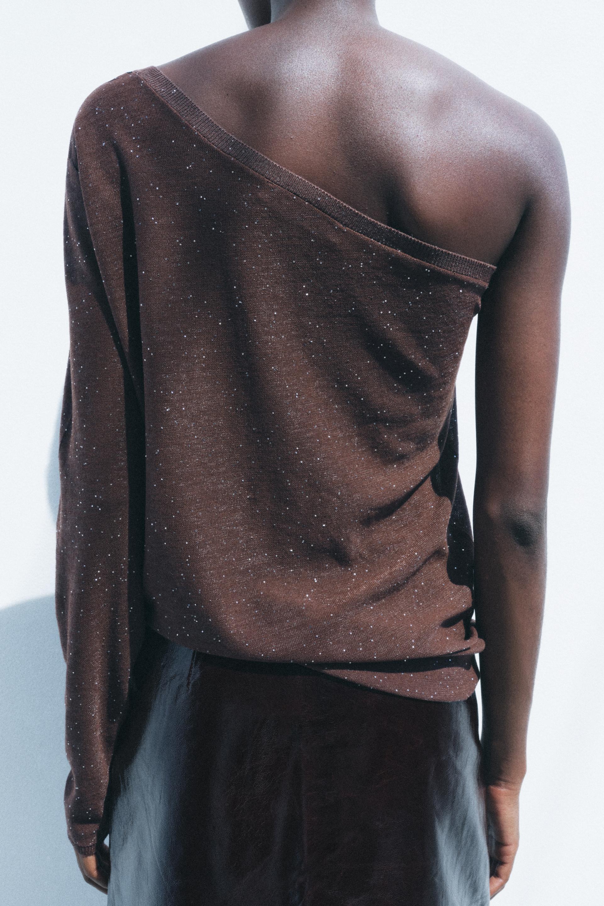 ASYMMETRIC SHIMMER KNIT TOP