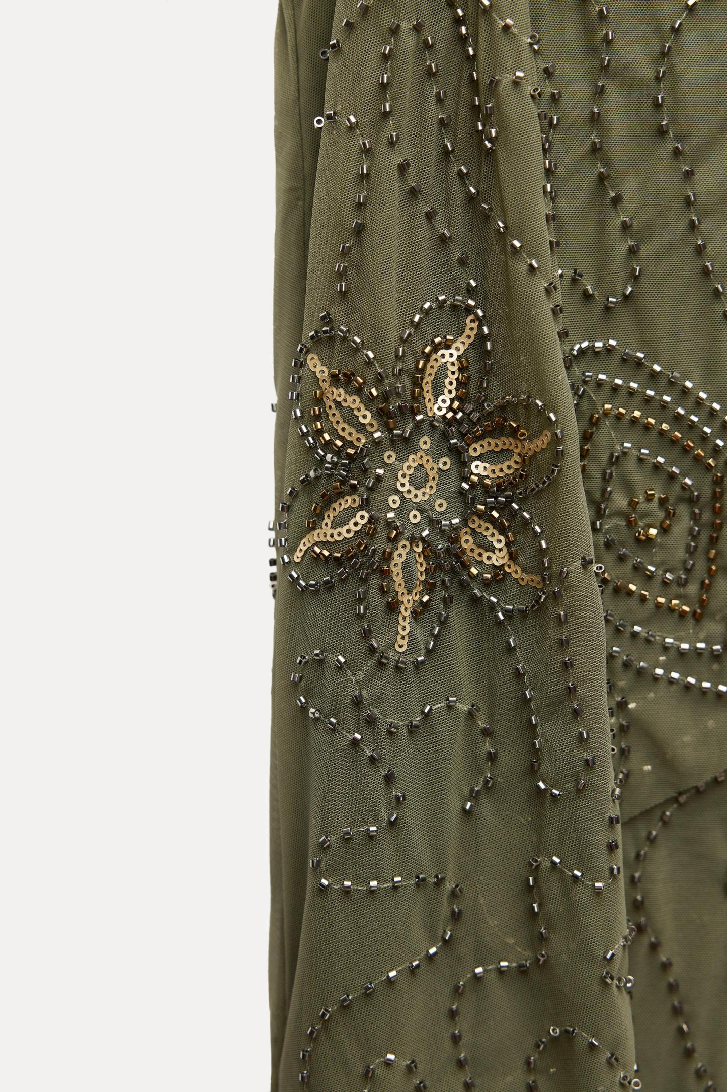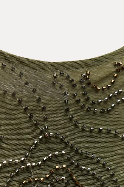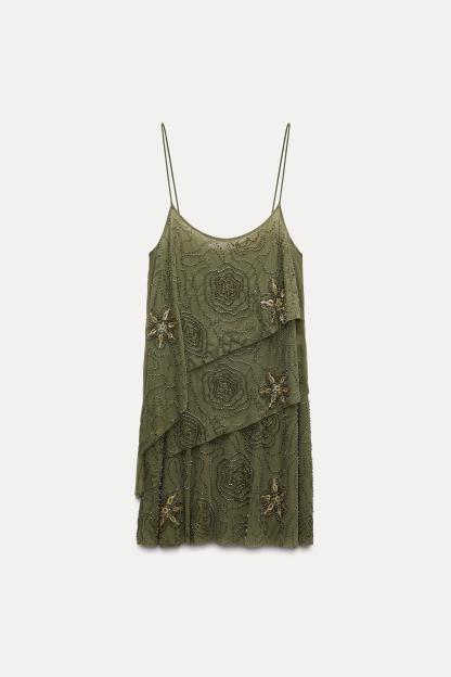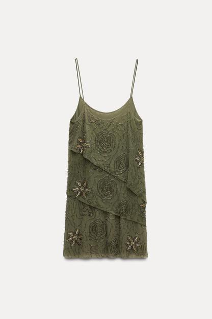 BEADED RUFFLE TULLE DRESS