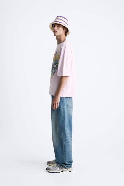 CONTRASTING TIE DYE PRINT T-SHIRT