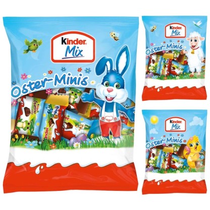 A lot comes together in the kinder Mix Easter Minis. The mixture of delicious milk chocolates with delicate milk cream filling, crunchy cereals or delicious hazelnut cream with wafer is presented here in bite-sized format and conjures up a smile on the lips with its fine taste and cheerful Easter motifs. With kinder Schokolade Mini, kinder Country Mini and kinder Bueno Mini, there is no shortage of variety when it comes to snacking.