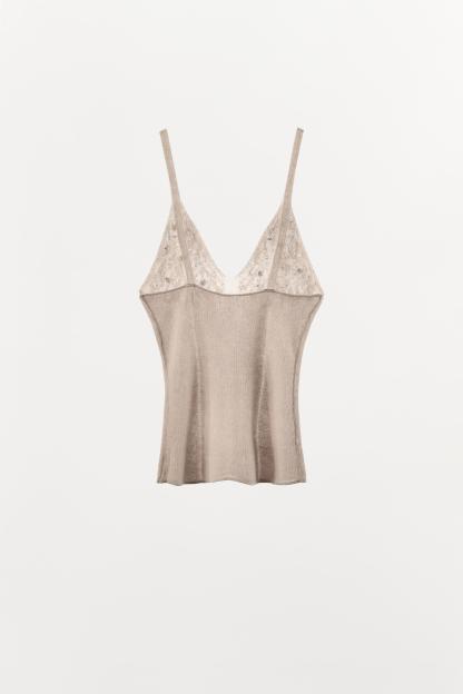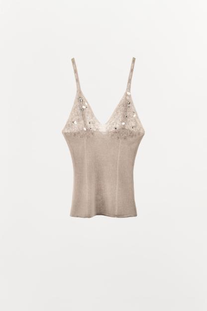 FINE KNIT BEADED EMBELLISHED TOP