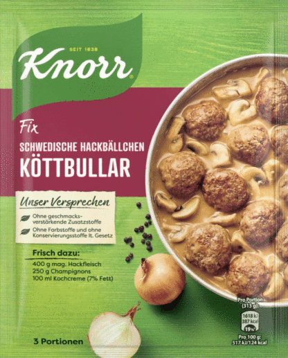 Knorr for Swedish meatballs Kottbullar made from 100% natural ingredients.