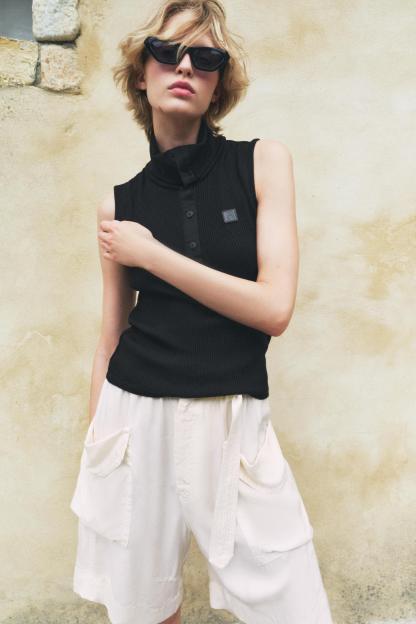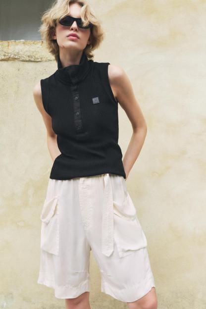 3% elastaneSECONDARY FABRIC100% cottonLINING100% cottonCARECaring for your clothes is caring for the environment.Wash your garments only when needed, as sometimes freshening them up is sufficient. Wash cycles slowly wear down fabrics. By reducing the amount of washing, we lengthen the life our garments and reduce water and energy consumption in their care.