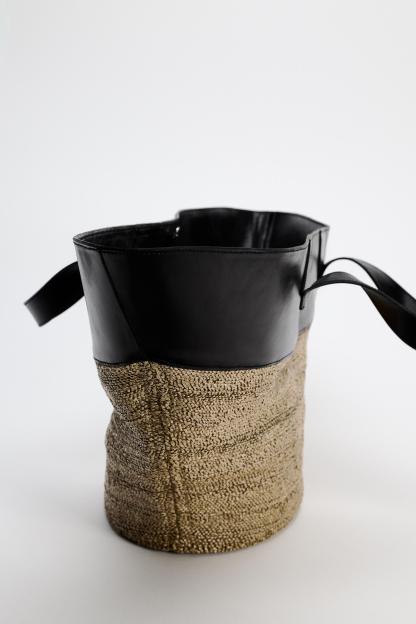 40% cottonADDITIONAL MATERIAL100% cow leatherLINING100% cow leatherCARECaring for your clothes is caring for the environment.Simple actions like washing items with a dry cotton cloth or soft brush, per the characteristics of the product, can help us care for them. Whenever possible, try to use products that are respectful of the environment.
