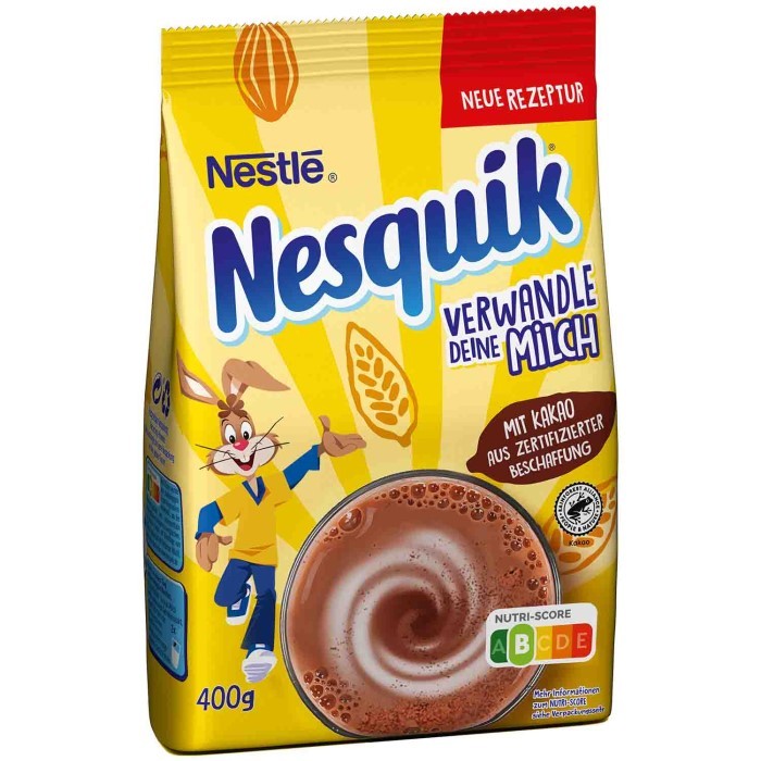 Nesquik is the chocolatey, delicious breakfast drink to mix. The drink powder can be prepared with both warm and cold milk and whets the appetite for the day. Thanks to the mix of 7 valuable vitamins, Nesquik brings the necessary energy boost to the table in a tasty way - a real treat for young and young-at-heart cocoa fans.