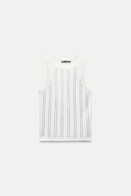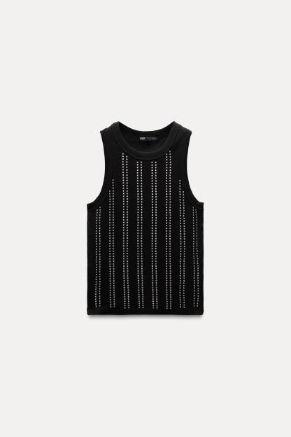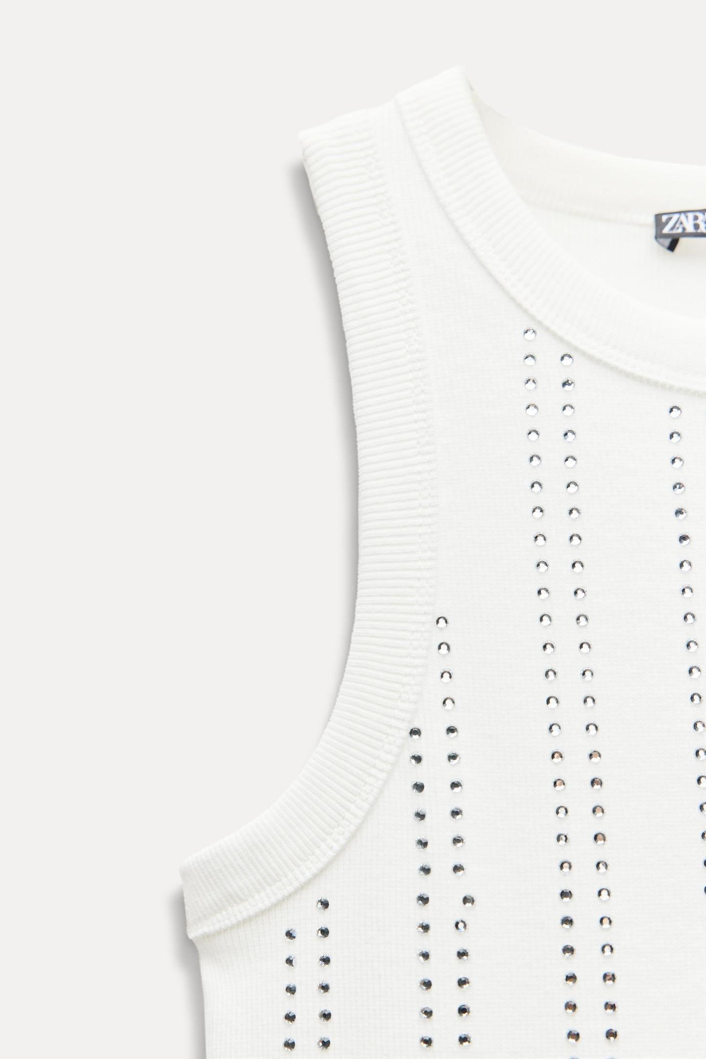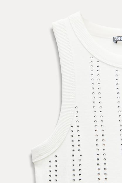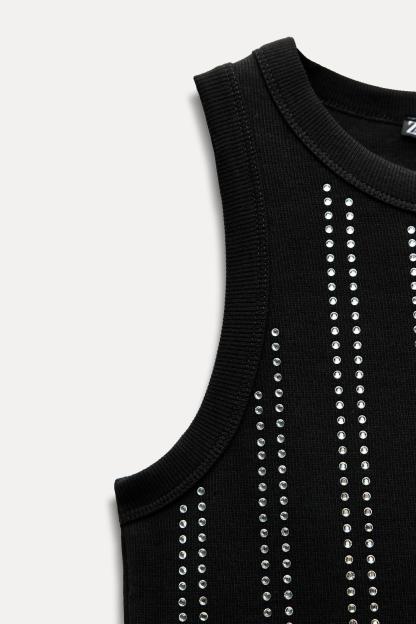 SLEEVELESS RIB JEWEL T-SHIRT