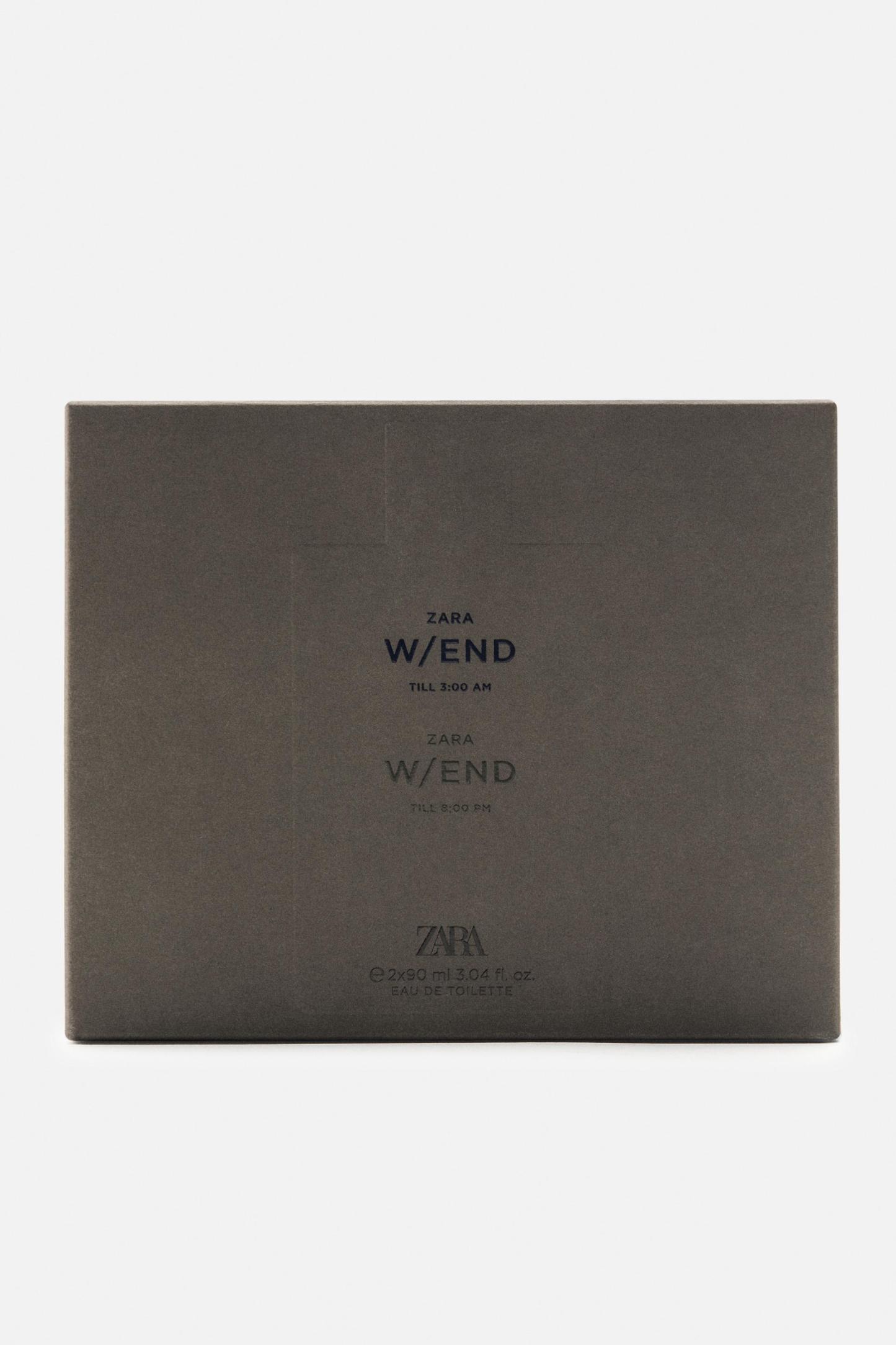 COMPOSITION & CARECOMPOSITIONWe work with monitoring programs to guarantee compliance with the social, environmental, and health and safety standards of our products. To assess its compliance, we have developed an audit program and plans for continual improvement.ZARA W/END TILL 3:00 AM EAU DE TOILETTEALCOHOL DENAT. � AQUA � PARFUM � LINALOOL � LIMONENE � ETHYLHEXYL METHOXYCINNAMATE � BHT � BUTYL METHOXYDIBENZOYLMETHANE � ETHYLHEXYL SALICYLATE � COUMARIN � CITRALZARA W/END TILL 8:00 PM EAU DE TOILETTEALCOHOL DENAT. � AQUA � PARFUM � BENZYL SALICYLATE � LINALOOL � COUMARIN � LIMONENE � CITRONELLOL � GERANIOL � BHT � ALPHA-ISOMETHYL IONONE � BENZYL BENZOATE � HEXYL CINNAMAL � EUGENOL � CITRAL � ISOEUGENOL